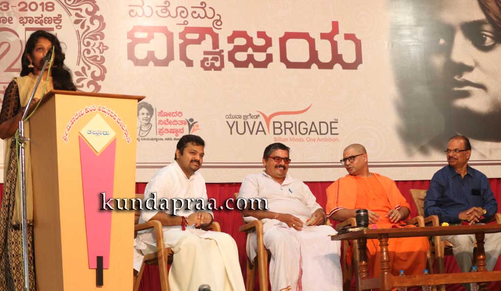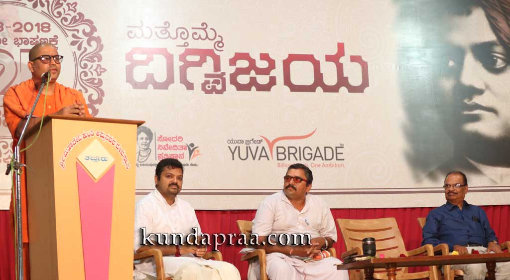 ಕುಂದಾಪುರ ಆರ್. ಎನ್. ಶೆಟ್ಟಿ ಸಭಾಂಗಣದಲ್ಲಿ ಯುವ ಬ್ರಿಗೇಡ್ ಕುಂದಾಪುರ ಹಮ್ಮಿಕೊಂಡ ಸ್ವಾಮಿ ವಿವೇಕಾನಂದ ಸಿಡಿಲ ಭಾಷಣಕ್ಕೆ ೧೨೫ ’ಮತ್ತೊಮೆ ದಿಗ್ವಿಜಯ’ ಕಾರ್ಯಕ್ರಮ ಉದ್ಘಾಟಿಸಿ ಮಾಡತಾಡುತ್ತಿದ್ದರು. ನಮ್ಮ ಧರ್ಮವೇ ಶ್ರೇಷ್ಠ ಎಂದು ವಿಶ್ವಕ್ಕೆ ತೋರಿಸುವ ಹಿನ್ನೆಲೆಯಲ್ಲಿ ನಡೆದ ಚಿಕಾಗೋ ಸರ್ಮಧರ್ಮ ಸಮ್ಮೇಳನದಲ್ಲಿ ವಿವೇಕಾನಂದರ ಭಾಗವಹಿಸದಿದ್ದರೆ ಏನಾಗುತ್ತಿತ್ತು ಎನೋದನ್ನ ಉಹಿಸುವುದು ಕಷ್ಟ. ಕೇವಲ ಎರಡೂವರೆ ನಿಮಿಷ ಮಾಡಿದ ಭಾಷಣದಲ್ಲಿ ಹಿಂದೂ ಧರ್ಮ ಸಂಸ್ಕೃತಿ ಶ್ರೇಷ್ಟ ಎಂದು ವಿಶ್ವಕ್ಕೆ ತೋರಿಸಿಕೊಟ್ಟಿದ್ದರಿಂದ ವಿದೇಶಿಯರು ಭಾರತ ನೋಡುವ ಸ್ಥಿತಿ ಬದಲಾಯಿತು. ಭಾಷಣದ ಆರಂಭವೇ ಎಲ್ಲರನ್ನು ಮಂತ್ರಮಗ್ನರನ್ನಾಗಿಸಿದ ವಿವೇಕವಾಣಿ ಸರ್ವಕಾಲಿಕ ಶ್ರೇಷ್ಠ ಸಂತ ಎಂದರು.