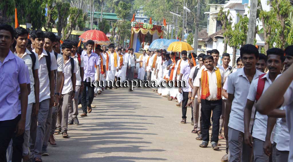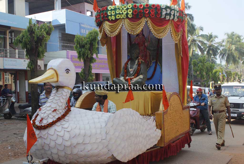 ಮತ್ತೊಮ್ಮೆ ದಿಗ್ವಿಜಯ ಕಾರ್ಯಕ್ರಮಕ್ಕೂ ಮುನ್ನಾ ಕುಂದಾಪುರದಲ್ಲಿ ವೈಭವದ ಶೋಭಾಯಾತ್ರೆ ನಡೆಯಿತು. ಕೊಲ್ಲೂರು ಶ್ರೀ ಮೂಕಾಂಬಿಕಾ ದೇವಸ್ಥಾನ ಆಡಳಿತ ಮಂಡಳಿ ಮಾಜಿ ಮೊಕ್ತೇಸರ ಬಿ.ಎಂ.ಸುಕುಮಾರ್ ಶೆಟ್ಟಿ ಶ್ರೀ ಕುಂದೇಶ್ವರ ದೇವಸ್ಥಾನ ಮುಂಭಾಗ ಶೋಭಾಯಾತ್ರೆಗೆ ಚಾಲನೆ ನೀಡಿದರು. ಅಲ್ಲಿಂದ ಹೊರಟ ಶೋಭಾಯಾತ್ರೆ, ನಗರದ ಮುಖ್ಯರಸ್ತೆ ಮೂಲಕ ಪಾರಿಜಾತ ವೃತ್ತ ಬಳಸಿ ಶಾಸ್ತ್ರಿ ವೃತ್ತದ ಮೂಲಕ ಕಾರ್ಯಕ್ರಮ ನಡೆಯುವ ಸ್ಥಳಕ್ಕೆ ಆಗಮಿಸಿತು. ಸ್ವಾಮಿ ವಿವೇಕಾನಂದ ಪ್ರತಿಮೆ ಜೊತೆ ನೂರಾರು ಮಂದಿ ಘೋಷಣೆ ಕೂಗಿತ್ತಾ ಶೋಭಾಯಾತ್ರೆಯಲ್ಲಿ ಸಾಗಿಬಂದರು.
