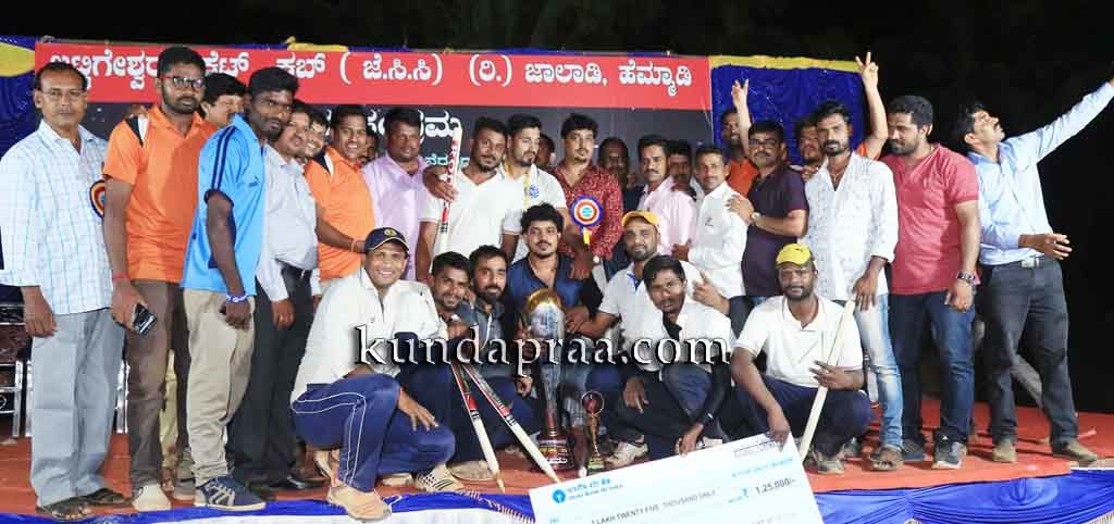 ವಿಜೇತ ಜೈ ಕರ್ನಾಟಕ ತಂಡ ೧.೨೫ ಲಕ್ಷ ರೂ., ರನ್ನರ್ಅಪ್ ಈಗಲ್ಸ್ ತಂಡ ೬೫ ಸಾವಿರ ರೂ. ನಗದು ಹಾಗೂ ಟ್ರೋಫಿಯನ್ನು ಪಡೆಯಿತು. ೩೦ ತಂಡಗಳು ಭಾಗಿ ೪೦ ಯಾರ್ಡ್ನ ಈ ಪಂದ್ಯಾವಳಿಯಲ್ಲಿ ರಾಜ್ಯದ ವಿವಿಧೆಡೆಗಳ ಒಟ್ಟು ೩೦ ತಂಡಗಳು ಆಡಳಿಲಿದಿದ್ದು, ಮೊದಲ ದಿನದ ಪಂದ್ಯಾವಳಿಯಲ್ಲಿ ಗಿಳಿಯಾರ ನಾಗ ಸಾರಥ್ಯದ ಸ್ಥಳೀಯ ತಂಡ ಫ್ರೆಂಡ್ಸ್ ಜಾಲಾಡಿ ಹಾಗೂ ಈಗಲ್ಸ್ ಕುಂಭಾಶಿ ಸೆಮಿಫೈನಲ್ಗೇರಿದರೆ, ಎರಡನೇ ದಿನ ಜೈ ಕರ್ನಾಟಕ ಹಾಗೂ ಸಂತೋಷ್ ನೇತೃತ್ವದ ಅಜಯ್ ಕುಂಜುಗುಡಿ ಸಾಲಿಗ್ರಾಮ ತಂಡಗಳು ಉಪಾಂತ್ಯ ಪ್ರವೇಶಿಸಿದವು.
