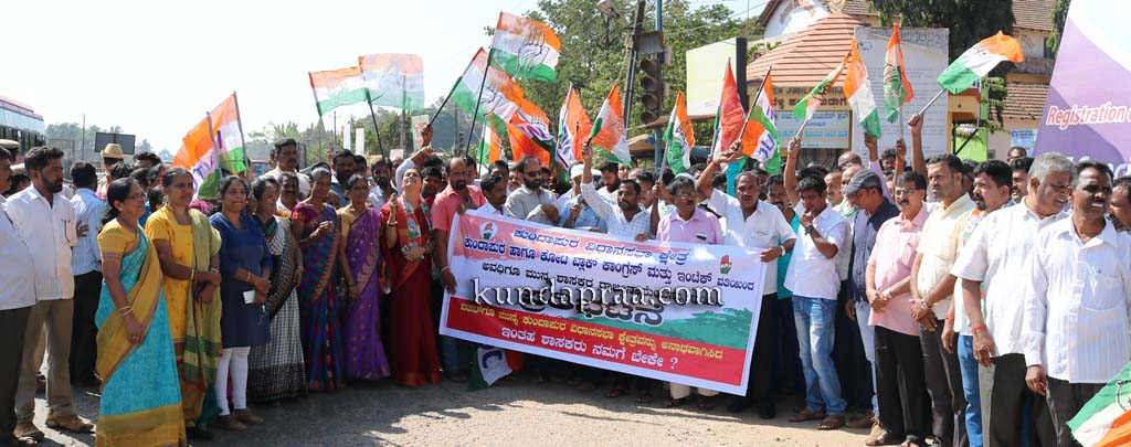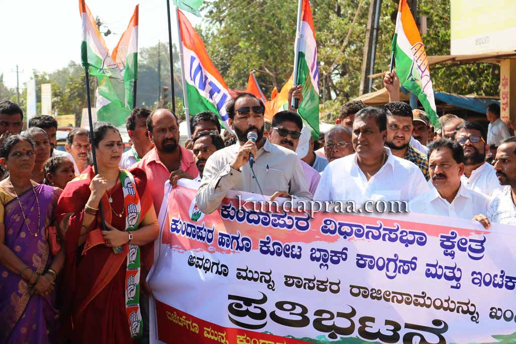 ಇಲ್ಲಿನ ಶಾಸ್ತ್ರೀ ವೃತ್ತದ ಬಳಿ ಅವಧಿಗೂ ಮುನ್ನ ರಾಜಿನಾಮೆ ಸಲ್ಲಿಸಿದ ಕುಂದಾಪುರ ನಿಕಟಪೂರ್ವ ಶಾಸಕರ ನಿಲವು ಖಂಡಿಸಿ ಕುಂದಾಪುರ, ಕೋಟ, ಹಾಗೂ ವಿವಿಧ ಮಹಿಲಾ ಮೋರ್ಚಾ, ಯುವ ಕಾಂಗ್ರೆಸ್ ಕಾರ್ಯಕರ್ತರು ಆಯೋಜಿಸಿದ್ದ ಪ್ರತಿಭಟನೆಯಲ್ಲಿ ಭಾಗವಹಿಸಿ ಮಾತನಾಡಿ ಕ್ಷೇತ್ರದ ಅಭಿವೃದ್ದಿಗಳ ಶಂಕುಸ್ಥಾಪನೆ, ವಿವಿಧಯೋಜನೆ, ಅಗತ್ಯವಿರುವ ದೊಡ್ಡ ದೊಡ್ಡ ಕಾನೂನುಗಳ ಅನುಷ್ಠಾನವಿರಬಹುದು ಇದರಲ್ಲಿ ಯಾವುದನ್ನೂ ಕುಂದಾಪುರ ಶಾಸಕರು ಮಾಡಿಲ್ಲ. ಕುಂದಾಪುರ ಶಾಸಕರ ಚಟುವಟಿಕೆಗಳು ಕಾಣಸಿಗುವುದಿಲ್ಲ ಎಂದು ಅವರು ಟೀಕಿಸಿದರು.