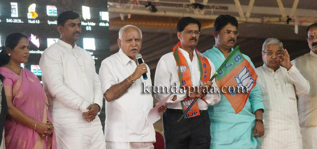 ಬಿಜೆಪಿ ರಾಜ್ಯಾಧ್ಯಕ್ಷ ಬಿ.ಎಸ್. ಯಡಿಯೂರಪ್ಪ ಅವರು ಬೆಂಗಳೂರಿನ ಅರಮನೆ ಮೈದಾನದಲ್ಲಿ ನಡೆದ ಕಾರ್ಯಕ್ರಮದಲ್ಲಿ ಹಾಲಾಡಿ ಅವರಿಗೆ ಶಾಲು ಹಾಕಿ, ಪಕ್ಷದ ಬಾವುಟ ನೀಡಿ ಸ್ವಾಗಿತಿಸಿಕೊಂಡರು. ಬಿಜೆಪಿಯ ರಾಜ್ಯ ಉಸ್ತುವಾರಿ ಮುರಳೀಧರ ರಾವ್, ಮುಖಂಡರಾದ ಆರ್. ಅಶೋಕ್, ಶೋಭಾ ಕರಂದ್ಲಾಜೆ, ಅರವಿಂದ ಲಿಂಬಾವಳಿ ಮೊದಲಾದವರು ಈ ಸಂದರ್ಭ ಇದ್ದರು.