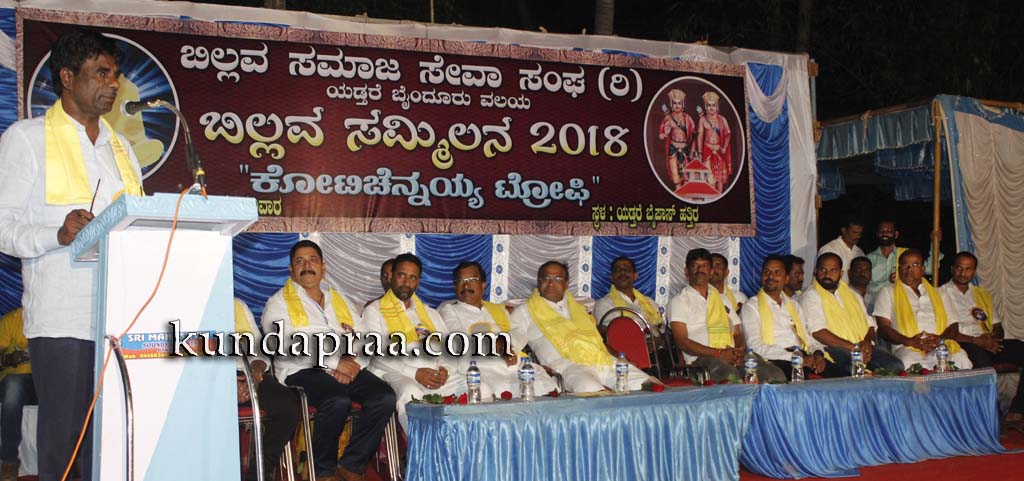 ಅವರು ಬಿಲ್ಲವ ಸಮಾಜ ಸೇವಾ ಸಂಘ ಯಡ್ತರೆ ಇದರ ವಿಂಶತಿ ವರ್ಷಾಚರಣೆಯ ಅಂಗವಾಗಿ ಶನಿವಾರ ಯಡ್ತರೆ ಬೈಪಾಸ್ ಬಳಿ ಆಯೋಜಿಸಲಾದ ಬಿಲ್ಲವ ಸಮ್ಮಿಲನ ೨೦೧೮ ’ಕೋಟಿ ಚೆನ್ನಯ್ಯ ಟ್ರೋಫಿ’ ಮಹಿಳೆಯರ ಹಗ್ಗ ಜಗ್ಗಾಟ ಹಾಗೂ ಹೊನಲು ಬೆಳಕಿನ ಕಬಡ್ಡಿ ಪಂದ್ಯಾಟ ಉದ್ಘಾಟಿಸಿ ಮಾತನಾಡಿದರು. ಬೈಂದೂರು ತಾಲೂಕು ಕೇಂದ್ರವಾಗಿ ರೂಪುಗೊಳ್ಳುವುದರೊಂದಿಗೆ ವಿವಿಧ ಅಭಿವೃದ್ಧಿ ಕಾರ್ಯಗಳು ನಡೆದಿವೆ. ಸದ್ಯದಲ್ಲೇ ಕೋರ್ಟ್, ತಾಲೂಕು ಪಂಚಾಯತ್ ಹಾಗೂ ಇತರೆ ಕಛೇರಿಗಳ ಕಾರ್ಯರಂಭ ಮಾಡಲಿವೆ. ಕೆಎಸ್ಆರ್ಟಿಸಿ ಡಿಪೋ ಕೂಡ ಮಂಜೂರಾಗಿದ್ದು ಜನರಿಗೆ ಅನುಕೂಲವಾಗಲಿದೆ. ಬಿಲ್ಲವ ಸಂಘಟನೆ ಕಟ್ಟಡ ನಿರ್ಮಾಣಕ್ಕೆ ಸರಕಾರಕ್ಕೆ ಪ್ರಸ್ತಾಪ ಸಲ್ಲಿಸುವುದಲ್ಲದೇ, ವೈಯಕ್ತಿಯವಾಗಿ ನೆರವು ನೀಡುವುದಾಗಿ ಅವರು ತಿಳಿಸಿದರು.