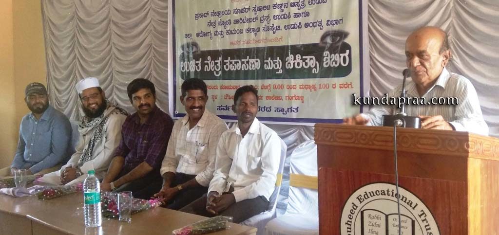 ಕಾರ್ಯಕ್ರಮದಲ್ಲಿ ಮುಖ್ಯ ಅತಿಥಿಯಾಗಿ ಮಾತನಾಡಿದ ಸಾಹಿತಿ ಕೋ.ಶಿವಾನಂದ ಕಾರಂತ್, ಮನುಷ್ಯನಿಗೆ ಕಣ್ಣುಗಳು ಅತ್ಯವಶ್ಯಕವಾಗಿದ್ದು, ಕಣ್ಣುಗಳ ಆರೈಕೆ ಬಗ್ಗೆ ಹೆಚ್ಚಿನ ಗಮನ ಹರಿಸಬೇಕು. ಕಾಲ ಕಾಲಕ್ಕೆ ಕಣ್ಣುಗಳ ತಪಾಸಣೆ ನಡೆಸಿಕೊಂಡು ಬೇಕಾದ ಅಗತ್ಯ ಚಿಕಿತ್ಸೆಗಳನ್ನು ಪಡೆದುಕೊಳ್ಳಬೇಕು. ಕಣ್ಣಿನ ಸಮಸ್ಯೆಗಳ ಬಗ್ಗೆ ನಿರ್ಲಕ್ಷ್ಯ ತಾಳಿದರೆ ಜೀವನ ಅಂಧಕಾರದಲ್ಲಿ ಕಳೆಯಬೇಕಾಗುತ್ತದೆ ಎಂದು ಹೇಳಿದರು.