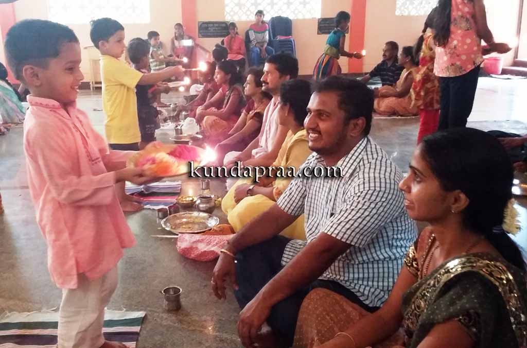 ಗಂಗೊಳ್ಳಿ : ಪುಟ್ಟ ಪುಟ್ಟ ಮಕ್ಕಳು ತಾಯಿಯ ಪಾದಗಳನ್ನು ತೊಳೆದು, ಪುಷ್ಪಗಳನ್ನು ಅರ್ಪಿಸಿ ಆರತಿ ಬೆಳಗುತ್ತಾ ತಾಯಿಯನ್ನು ಪೂಜಿಸಿ ವಂದಿಸುವ ಆ ಸುಂದರ ಅಪರೂಪದ ದೃಶ್ಯ ಕಂಡು ಬಂದಿದ್ದು ಗಂಗೊಳ್ಳಿಯ ಶ್ರೀ ಶಾರದಾ ಮಂಟಪದಲ್ಲಿ.