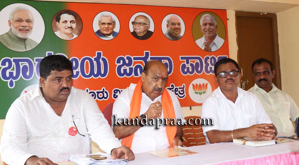 ಅವರು ಬೈಂದೂರು ಬಿಜೆಪಿ ಕಛೇರಿಯಲ್ಲಿ ಜರುಗಿದ ಪತ್ರಿಕಾಗೋಷ್ಠಿಯಲ್ಲಿ ಮಾತನಾಡಿ ಚುನಾವಣೆ ಸಮೀಸುತ್ತಿದ್ದಂತೆ ಶುಂಕುಸ್ಥಾಪನೆ ಮಾಡುವವರು ಕಳೆದ ಐದು ವರ್ಷಗಳ ಕಾಲ ಎಲ್ಲಿದ್ದರು. ಬೈಂದೂರಿನಲ್ಲಿ ಮೆಡಿಕಲ್ ಕಾಲೇಜು, ವಿಮಾನ ನಿಲ್ದಾಣ, ಪ್ರವಾಸೋದ್ಯಮ ಅಭಿವೃದ್ಧಿಗೆ ವಿಪುಲ ಅವಕಾಶಗಳಿದ್ದರೂ, ಯಾವುದೂ ಕೂಡ ಅಭಿವೃದ್ಧಿಯನ್ನು ಕಂಡಿಲ್ಲ. ಯುವಕರಿಗೆ ಉದ್ಯೋಗವಕಾಶಗಳು ಸೃಷ್ಟಿಯಾಗಿಲ್ಲ ಎಂದು ಆರೋಪಿಸಿದ ಅವರು ಈ ಭಾರಿ ಬೈಂದೂರು ಕ್ಷೇತ್ರಾದ್ಯಂತ ತಿರುಗಾಟ ಮಾಡಿದ್ದು, ಪಕ್ಷದ ಕಾರ್ಯಕರ್ತರು ಮತ್ತೆ ಬಿಜೆಪಿ ಪಕ್ಷವನ್ನು ಅಧಿಕಾರಕ್ಕೆ ತರುವ ಹುಮ್ಮಸ್ಸಿನಲ್ಲಿದ್ದಾರೆ. ಭಾರಿ ಅಂತರದಿಂದ ಗೆಲುವು ಸಾಧಿಸುವ ನಿರೀಕ್ಷೆ ಇದೆ ಎಂದರು.