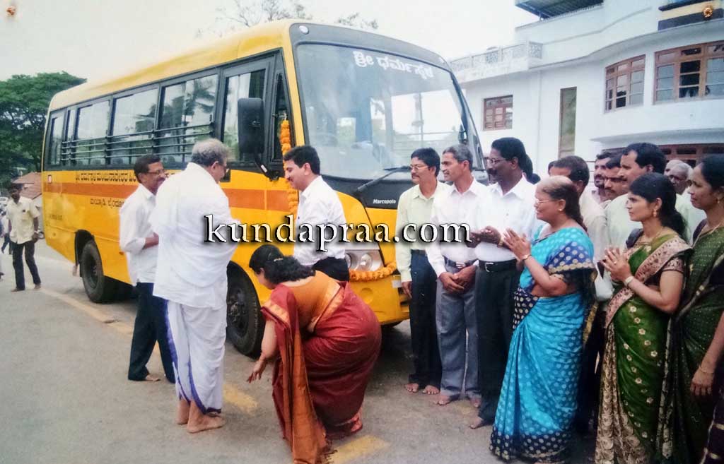 ಮಯ್ಯಾಡಿ ಶಾಲೆಯಲ್ಲಿ ವಿದ್ಯಾರ್ಥಿಗಳ ಸಂಖ್ಯೆ ಕ್ಷೀಣಿಸುತ್ತಿದ್ದಾಗ ಶಾಲೆಯ ಶಿಕ್ಷಕರೆಲ್ಲರೂ ಸೇರಿ ಮೊದಲು ಆಟೋ ರಿಕ್ಷಾವೊಂದನ್ನು ಕೊಂಡುಕೊಂಡರು. ಅದೇ ಶಾಲೆಯಲ್ಲಿ ಅಡುಗೆ ಕೆಲಸ ಮಾಡುತ್ತಿದ್ದ ಯವಕನೇ ಬೆಳಿಗ್ಗೆ ವಿದ್ಯಾರ್ಥಿಗಳನ್ನು ಕರೆತರುತ್ತಿದ್ದ. ಕ್ರಮೇಣ ವಿದ್ಯಾರ್ಥಿಗಳ ಸಂಖ್ಯೆ ಹೆಚ್ಚಿದ್ದರಿಂದ ಒಂದು ವರ್ಷದ ಬಳಿಕ ಮತ್ತೊಂದು ಆಟೋ ಶಾಲೆಗೆ ಬಂತು. ಈ ನಡುವೆ ಶಾಲೆಗೆ ಬಂದಿದ್ದ ಶಾಲೆಯ ಹಳೆ ವಿದ್ಯಾರ್ಥಿ ಮಯ್ಯಾಡಿ ಗದ್ದೆಮನೆ ನಾಗರಾಜ್ ಶೇಟ್ ಎಂಬುವವರು ಗಿರಿಜಾರಾಮ ಶೇಟ್ ಅವರ ಹೆಸರಿನಲ್ಲಿ ಶಾಲೆಗೆ ಬಸ್ಸೊಂದನ್ನು ನೀಡುವ ಭರವಸೆ ನೀಡಿದರು. ಸುಮಾರು 11 ಲಕ್ಷ ರೂ. ವೆಚ್ಚದ ಬಸ್ನ್ನು ನಾಗರಾಜ ಶೇಟ್ ದಂಪತಿಗಳು ಧರ್ಮಸ್ಥಳದಲ್ಲಿ ಡಾ. ಡಿ. ವಿರೇಂದ್ರ ಹೆಗ್ಗಡೆಯವರ ಮೂಲಕ ಶಾಲೆಗೆ ಹಸ್ತಾಂತರಿಸಿದರು. ಪೂಜ್ಯರು ವಾಹನದ ಬೀಗವನ್ನು ಚಾಲಕನಿಗೆ ಕೊಡುವ ಸಂದರ್ಭದಲ್ಲಿ ಶಾಲೆಯ ದೈಹಿಕ ಶಿಕ್ಷಣ ಶಿಕ್ಷಕರೇ ಅದನ್ನು ಸ್ವೀಕರಿಸಿದರು. ಅವರೇ ಮುಂದುವರಿಯಲಿ ಎಂಬ ಖಾವಂದರ ಅಭಿಲಾಷೆಯನ್ನು ರಾಜು ಮಯ್ಯಾಡಿಯವರು ಮನಸಾಇಚ್ಚೆ ಪೂರೈಸಿದ್ದಾರೆ. ವಾಹನದ ನಿರ್ವಹಣ ವೆಚ್ಚವನ್ನು ಎಸ್ಡಿಎಂ ಆಡಳಿತ ಮಂಡಳಿ ನೋಡಿಕೊಳ್ಳುತ್ತಿದೆ. ದೈನಂದಿನ ಡಿಸೆಲ್ ವೆಚ್ಚವನ್ನು ಹಳೆವಿದ್ಯಾರ್ಥಿಗಳ ಮೂಲಕ ರೂ.11 ಲಕ್ಷದ ನಿಧಿಯೊಂದನ್ನು ಸ್ಥಾಪಿಸಿ ಅದರಿಂದ ಬರುವ ಬಡ್ಡಿಯ ಮೂಲಕ ಭರಿಸಲಾಗುತ್ತಿದೆ.