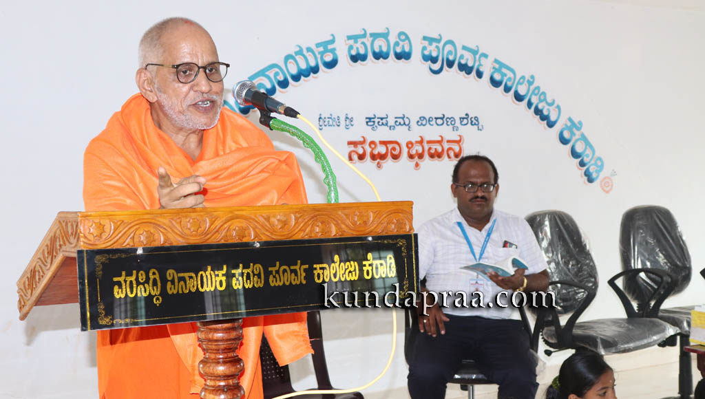 ಅವರು ಕೆರಾಡಿಯ ವರಸಿದ್ಧಿವಿನಾಯಕ ಪದವಿಪೂರ್ವ ಕಾಲೇಜಿನ ಕೃಷ್ಣಮ್ಮ ವೀರಣ್ಣ ಶೆಟ್ಟಿ ಸಭಾಭವನದಲ್ಲಿ ಸಂಪೂರ್ಣ ಭಗವದ್ಗೀತಾ ಅಧ್ಯಯನ ಶಿಬಿರಕ್ಕೆ ಚಾಲನೆ ನೀಡಿ ಮಾತನಾಡಿದರು.