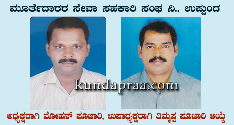 mohan poojari uppunda as new president and Timmappa Poojari as vice president of uppunda-murthedharara-seva-sahakari-sangha