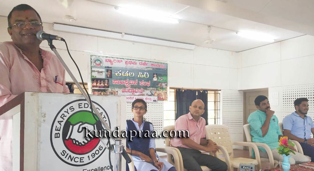 ಕುಂದಾಪುರ: ಬ್ಯಾರೀಸ್ ಪ್ರಥಮ ದರ್ಜೆ ಕಾಲೇಜು, ಕೋಡಿ. ಕುಂದಾಪುರ ಇದರ ಸಾಂಸ್ಕೃತಿಕ ಘಟಕ ’ಕಡಲಸಿರಿ’ ವತಿಯಿಂದ ಕುಮಾರವ್ಯಾಸ ಕಾವ್ಯದ ಗಮಕಗಾಯನ ನೆರವೇರಿತು. ಉಡುಪಿ ಜಿಲ್ಲಾ ರಾಜ್ಯೋತ್ಸವ ಪ್ರಶಸ್ತಿ ಪುರಸ್ಕೃತ ಭಾಗವತರಾದ ಕರುಣಾಕರ ಆಚಾರ್ಯ ಕೋಟೇಶ್ಯರ ಇವರ ಗಾಯನಕ್ಕೆ ಕಡಲಸಿರಿ ಸಂಘಟಕ ಹಾಗೂ ಕನ್ನಡ ಉಪನ್ಯಾಸಕರಾಗಿರುವ ಸಂದೀಪ ಕುಮಾರ ಶೆಟ್ಟಿ ಯವರ ಅರ್ಥಗಾರಿಕೆ ಮೆರುಗು ನೀಡಿತು.
