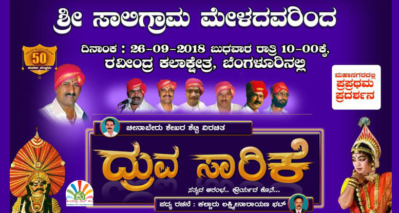 ಕುಂದಾಪುರ: ಬೆಂಗಳೂರಿನ ರವೀಂದ್ರ ಕಲಾಕ್ಷೇತ್ರದಲ್ಲಿ ಸೆ.26 ಬುಧವಾರ ರಾತ್ರಿ 10 ಗಂಟೆಗೆ ಶ್ರೀ ಸಾಲಿಗ್ರಾಮ ಮೇಳದ ದ್ರುವ ಸಾರಿಕೆ ಯಕ್ಷಗಾನ ಪ್ರದರ್ಶನಗೊಳ್ಳಲಿದೆ.