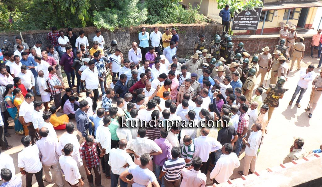 ಪ್ರತಿಭಟನೆಯಲ್ಲಿ ಭಾಗವಹಿಸಿದ್ದ ಬೈಂದೂರು ಶಾಸಕ ಬಿ. ಎಂ. ಸುಕುಮಾರ ಶೆಟ್ಟಿ ಮಾತನಾಡಿ ಬೈಂದೂರು ಠಾಣಾಧಿಕಾರಿ ಠಾಣಾ ವ್ಯಾಪ್ತಿಯಲ್ಲಿ ನಡೆಯುತ್ತಿರುವ ಅಕ್ರಮಗಳ ಬಗ್ಗೆ ಚಕಾರವೆತ್ತುತ್ತಿಲ್ಲ. ಮಟ್ಕ ದಂಧೆಗೆ ಕಡಿವಾಣ ಹಾಕುವಂತೆ ಸೂಚಿಸಿದ್ದರೂ ಅಕ್ರಮ ವ್ಯವಹಾರಗಳಿಗೆ ಹಿಂಬಾಗಿಲಿನಿಂದ ಬೆಂಬಲಿಸುತ್ತಿದ್ದಾರೆ. ಜನರ ಸಮಸ್ಯೆಯನ್ನಿಟ್ಟು ಕೊಂಡುಠಾಣೆಗೆ ಬಂದ ಜಿಲ್ಲಾ ಪಂಚಾಯತ್ ಸದಸ್ಯರ ಮೇಲೆ ಅಧಿಕಾರದ ದರ್ಪ ತೋರುವುದು ತಕ್ಕುದಲ್ಲ. ಪೊಲೀಸ್ ಠಾಣೆಯಲ್ಲಿ ಬ್ರಿಟಿಷರಕಾಲದ ವ್ಯವಸ್ಥೆ ಇನ್ನೂ ಮುಂದುವರಿಸಿಕೊಂಡು ಹೋಗುತ್ತಿರುವುದು ವಿಷಾದನೀಯ. ಠಾಣಾಧಿಕಾರಿಯ ಮೇಲೆ ಇಲಾಖೆ ಕ್ರಮ ಕೈಗೊಳ್ಳಬೇಕು ಎಂದವರು ಆಗ್ರಹಿಸಿದರು.