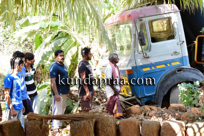 ಇಲ್ಲಿ ಸಂಸ್ಥೆಯ ಬೃಹತ್ ಜಲ್ಲಿ-ಟಾರು ಮಿಶ್ರಣ ಘಟಕ ಇದೆ. ಒಂದು ಲಾರಿಯ ಚಾಲಕ ಎಂದಿನಂತೆ ಮಿಶ್ರಣ ತುಂಬಿಸಿಕೊಂಡು ಬಂದು ಲಾರಿಯನ್ನು ವೇಬ್ರಿಜ್ ಮೇಲೆ ನಿಲ್ಲಿಸಿ ಇಳಿದುಹೋಗಿದ್ದ. ಲಾರಿ ತಂತಾನೆ ಚಲಿಸಿ, ಅಡ್ಡ ಇರುವ ರಸ್ತೆ ದಾಟಿ ಮೂಕಾಂಬಿಕಾ ದೇವಾಡಿಗ ಎಂಬವರ ನಿವೇಶನದ ಕಲ್ಲಿನ ಆವರಣಕ್ಕೆ ಬಡಿದಿದೆ. ಅದರಿಂದಾಗಿ ಆವರಣ ಕುಸಿದು ಬಿದ್ದಿದೆ.
