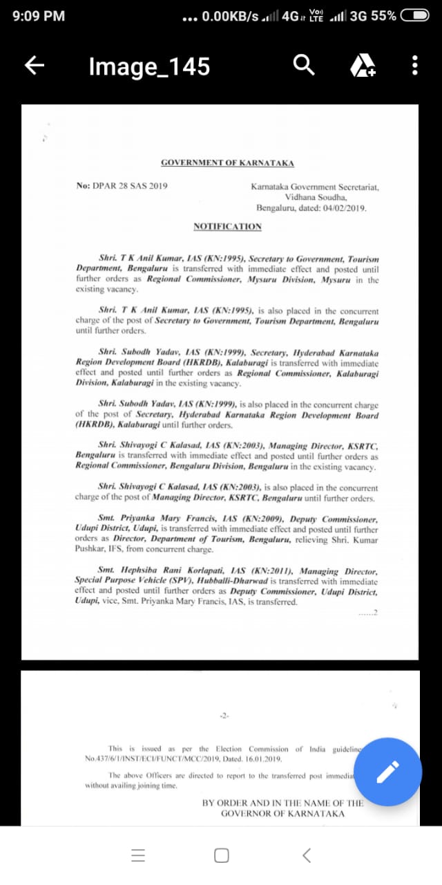 ಸುತ್ತೋಲೆ ಹೊರಡಿಸಿದ್ದು ಉಡುಪಿ ಜಿಲ್ಲಾಧಿಕಾರಿ ಶ್ರೀಮತಿ ಪ್ರಿಯಾಂಕ ಮೇರಿ ಫ್ರಾನ್ಸಿಸ್ ಅವರು ವರ್ಗಾವಣೆಗೊಂಡು ನೂತನ ಡಿಸಿಯಾಗಿ ಹೆಪ್ಸಿಭಾ ರಾಣಿ ನೇಮಕಗೊಂಡಿದ್ದಾರೆ.