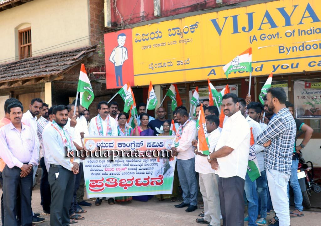 ಬೈಂದೂರು ವಿಧಾನಸಭಾ ಕ್ಷೇತ್ರ ಯುವ ಕಾಂಗ್ರಸ್ ಸಮಿತಿ ಅಧ್ಯಕ್ಷ ಶೇಖರ ಪೂಜಾರಿ ಪ್ರತಿಭಟನೆಯ ನೇತೃತ್ವ ವಹಿಸಿದ್ದರು. ಬೈಂದೂರು ಬ್ಲಾಕ್ ಕಾಂಗ್ರೆಸ್ ಅಧ್ಯಕ್ಷ ಎಸ್. ಮದನಕುಮಾರ್ ಉಪ್ಪುಂದ, ಜಿಲ್ಲಾ ಪಂಚಾಯತ್ ಸದಸ್ಯೆ ಗೌರಿ ದೇವಾಡಿಗ, ತಾಲೂಕು ಪಂಚಾಯತ್ ಸದಸ್ಯೆ ಪ್ರಮೀಳಾ ದೇವಾಡಿಗ, ಯಡ್ತರೆ ಗ್ರಾಮ ಪಂಚಾಯತ್ ಅಧ್ಯಕ್ಷೆ ಮೂಕಾಂಬು ದೇವಾಡಿಗ, ಗ್ರಾಮ ಪಂಚಾಯತ್ ಸದಸ್ಯರುಗಳಾದ ನಾಗರಾಜ ಗಾಣಿಗ, ಗಣೇಶ ಪೂಜಾರಿ, ಉಮೇಶ್ ದೇವಾಡಿಗ, ಆನಂದ ಶೆಟ್ಟಿ, ರಾಜೇಶ್ ದೇವಾಡಿಗ, ಪಕ್ಷದ ಪ್ರಮುಖರಾದ ಮೋಹನ ಪೂಜಾರಿ ಉಪ್ಪುಂದ, ಮಣಿಕಂಠ ದೇವಾಡಿಗ, ಸುಬ್ರಹ್ಮಣ್ಯ ಪೂಜಾರಿ, ತಬ್ರೇಜ್ ನಾಗೂರು, ಸನತ್ ಕೊಲ್ಲೂರು ಮೊದಲಾದವರು ಇದ್ದರು.