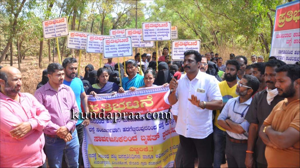 ವಿಧಾನಸಭಾ ಚುನಾವಣೆಯ ಮುನ್ನ ಅಂದಿನ ಶಾಸಕ ಕೆ. ಗೋಪಾಲ ಪೂಜಾರಿ ಈ ರಸ್ತೆಗೆ ೩ ಕೋಟಿ ವಿಶೇಷ ಅನುದಾನ ಮಂಜೂರು ಮಾಡಿಸಿದರು. ಚುನಾವಣೆಯಲ್ಲಿ ಅವರು ಸೋತು, ಬಿ. ಎಂ. ಸುಕುಮಾರ ಶೆಟ್ಟಿ ಶಾಸಕರಾದರು. ಸರ್ಕಾರವೂ ಬದಲಾಯಿತು. ರಸ್ತೆಯನ್ನು ಎರಡು ಭಾಗಗಳಲ್ಲಿ ದುರಸ್ತಿ ಮಾಡಲು ಒಟ್ಟು ರೂ ೨. ೪ ಕೋಟಿ ಮೊತ್ತದ ಅಂದಾಜು ತಯಾರಿಸಿ, ಟೆಂಡರು ಕರೆಯಲಾಯಿತು. ಆದರೆ ಯಾವುದೋ ಕಾರಣದಿಂದ ಟೆಂಡರು ಇನ್ನೂ ಅಂತಿಮಗೊಂಡಿಲ್ಲ ಎನ್ನಲಾಗುತ್ತಿದೆ. ದುರಸ್ತಿ ಕಾರ್ಯ ತಕ್ಷಣ ಆರಂಭವಾಗದೆ ಲೋಕಸಭಾ ಚುನಾವಣೆಯ ನೀತಿಸಂಹಿತೆ ಜಾರಿಯಾದರೆ ದುರಸ್ತಿ ಕಾರ್ಯ ಮಳೆಗಾಲದ ಬಳಿಕ ಆರಂಭವಾಗಬೇಕಾಗುತ್ತದೆ. ಅಲ್ಲಿಯ ತನಕ ತಡೆದುಕೊಳ್ಳುವ ತಾಳ್ಮೆ ಜನರಿಗಿಲ್ಲ. ಅದಕ್ಕಾಗಿ ಈ ಹೋರಾಟ ಎಂದು ಅವರು ತಿಳಿಸಿದರು. ತಾಲ್ಲೂಕು ಪಂಚಾಯಿತಿ ಮಾಜಿ ಅಧ್ಯಕ್ಷ ಎಸ್. ಪ್ರಕಾಶ್ಚಂದ್ರ ಶೆಟ್ಟಿ ಈ ರಸ್ತೆಯ ದುರಸ್ತಿಗೆ ತಾವು ಪಟ್ಟ ಶ್ರಮವನ್ನು ವಿವರಿಸಿ ಇಲಾಖೆ ಅನುಸರಿಸಬೇಕಾದ ಪ್ರಕ್ರಿಯೆಗಳ ಕಾರಣಗಳಿಂದ ಕಾಮಗಾರಿ ಆರಂಭ ತಡವಾಗಿದೆ. ಇನ್ನು ಒಂದೆರಡು ದಿನಗಳಲ್ಲಿ ಆರಂಭವಾಗಬಹುದು ಎಂಬ ವಿಶ್ವಾಸ ವ್ಯಕ್ತಪಡಿಸಿದರು. ಕಿರಿಮಂಜೇಶ್ವರ ಗ್ರಾಮ ಪಂಚಾಯಿತಿ ಮಾಜಿ ಅಧ್ಯಕ್ಷ ಸುಬ್ಬಣ್ಣ ಶೆಟ್ಟಿ, ಹೇರೂರು ಗ್ರಾಮ ಪಂಚಾಯಿತಿ ಸದಸ್ಯ ಯು. ಮಂಜುನಾಥ ಭಟ್, ಜಿಲ್ಲಾ ಪಂಚಾಯಿತಿ ಸದಸ್ಯೆ ಗೌರಿ ದೇವಾಡಿಗ ಪ್ರತಿಭಟನಾ ನಿರತರನ್ನು ಉದ್ದೇಶಿಸಿ ಮಾತನಾಡಿದರು. ಒಂದು ಹಂತದಲ್ಲಿ ನೀತಿಸಂಹಿತೆ ಜಾರಿ ಆಗುವುದರೊಳಗೆ ದುರಸ್ತಿ ಕಾರ್ಯ ಆರಂಭವಾಗದಿದ್ದರೆ ಲೋಸಭಾ ಚುನಾವಣೆ ಬಹಿಷ್ಕರಿಸುವುದಾಗಿ ಪ್ರತಿಭಟನಾ ನಿರತರು ಘೋಷಿಸಿದರು. ಮಧ್ಯಾಹ್ನದ ಹೊತ್ತಿಗೆ ಸ್ಥಳಕ್ಕೆ ಬಂದ ಇಂಜಿನಿಯರ್ ಮಂಜುನಾಥ ಮತ್ತು ದುರ್ಗಾದಾಸ್ ಇನ್ನು ೭ ದಿನಗಳೊಳಗೆ ಟೆಂಡರು ಪ್ರಕ್ರಿಯೆ ಮುಗಿಸಿ, ಕಾಮಗಾರಿ ಆರಂಭಿಸುವ ಭರವಸೆ ನೀಡಿದರು. ಶಾಸಕರ ಪರವಾಗಿ ಬಂದಿದ್ದ ದೀಪಕ್ಕುಮಾರ ಶೆಟ್ಟಿ ಶಾಸಕರು ಶುಕ್ರವಾರ ಬಂದು ಕಾಮಗಾರಿ ಆರಂಭಕ್ಕೆ ಚಾಲನೆ ನೀಡುವರು ಎಂದು ತಿಳಿಸಿದರು. ಆ ಬಳಿಕ ಪ್ರತಿಭಟನೆ ಹಿಂತೆಗದುಕೊಳ್ಳಲಾಯಿತು.