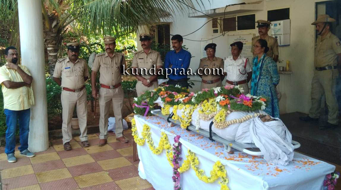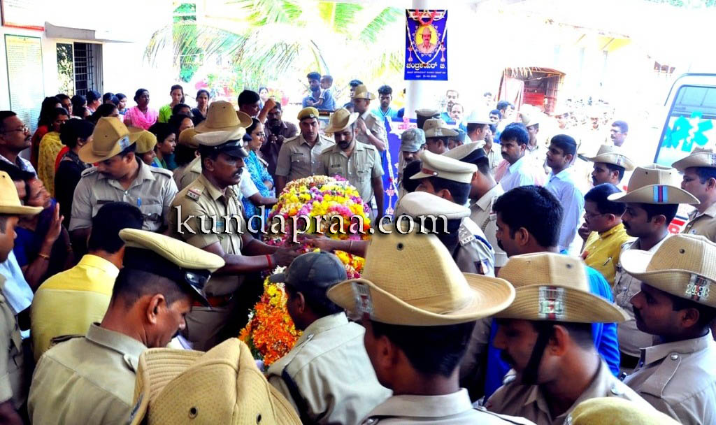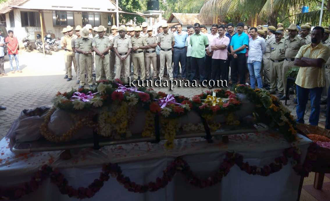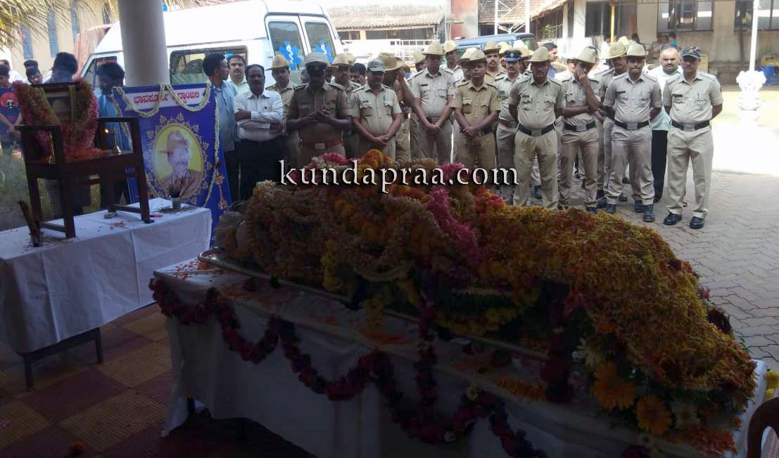 ಕುಂದಾಪುರ : ಅಪಘಾತದಲ್ಲಿ ತೀವೃವಾಗಿ ಗಾಯಗೊಂಡು ಚಿಕಿತ್ಸೆ ಫಲಕಾರಿಯಾಗದೆ ಸೋಮವಾರ ಮೃತ ಪಟ್ಟ ಕುಂದಾಪುರ ಪೊಲೀಸ್ ಠಾಣೆಯ ಹೆಡ್ ಕಾನ್ಸ್ಟೇಬಲ್ ಬಿ.ಚಂದ್ರಶೇಖರ (42) ಅವರ ಪಾರ್ಥಿವ ಶರೀರಕ್ಕೆ ಮಂಗಳವಾರ ಬೆಳಿಗ್ಗೆ ಇಲ್ಲಿನ ಪೊಲೀಸ್ ಠಾಣೆಯಲ್ಲಿ ಅಂತಿಮ ನಮನಗಳನ್ನು ಸಲ್ಲಿಸಲಾಯಿತು.