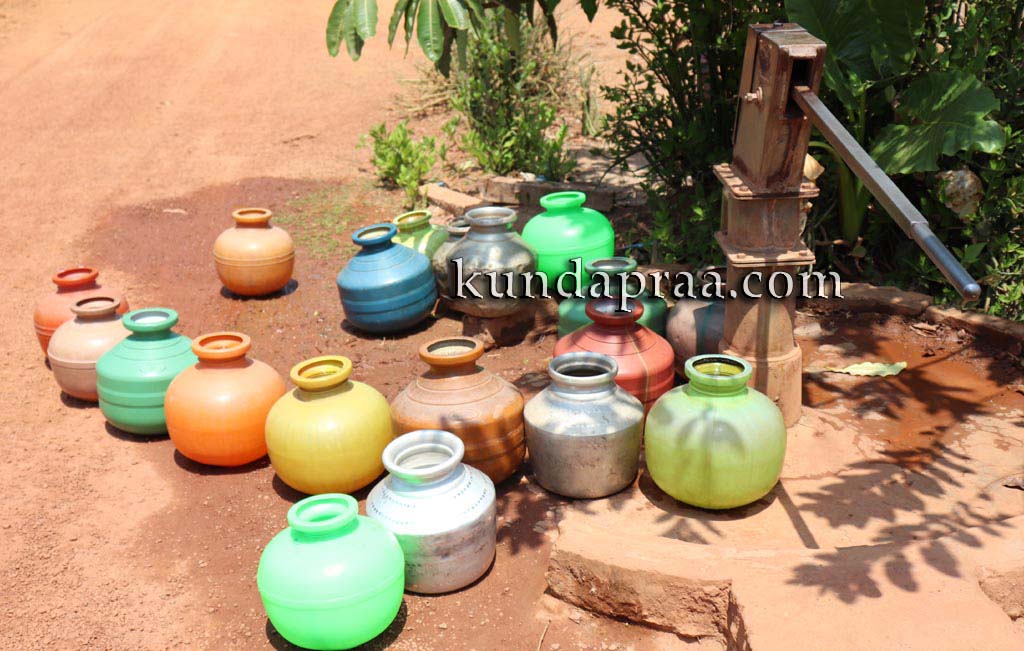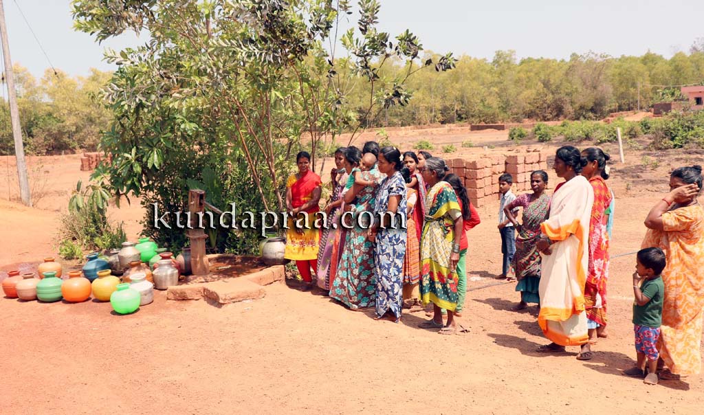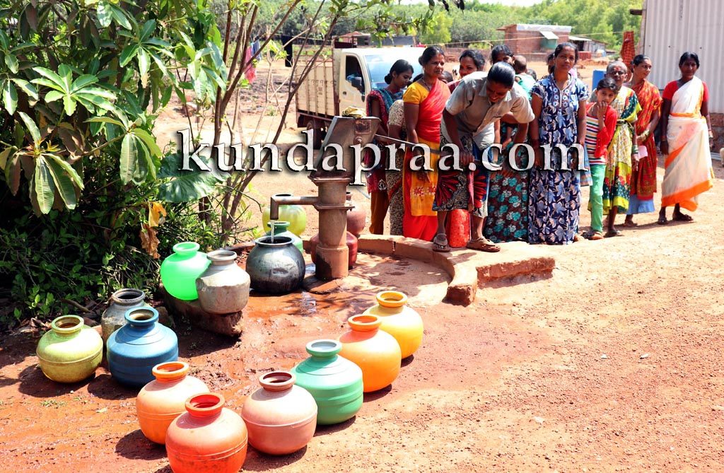 ಇರುವುದು ಎರಡು ಕೊಳವೆ, ಒಂದು ತೆರೆದ ಬಾವಿ. ತೆರದ ಬಾವಿ ಬತ್ತಿ ಒಂದೆರಡು ತಿಂಗಳಾಗಿದೆ. ಮತ್ತೊಂದು ಕೊಳವೆ ಬಾವಿ ನೀರು ನಿಲ್ಲಿಸಿದೆ. ಇರುವ ಒಂದೇ ಕೊಳವೆ ಬಾವಿಯಿಂದ ಇಡೀ ಜನತಾ ಕಾಲನಿ ನೀರು ಪೂರೈಕೆ ಮಾಡಿಕೊಳ್ಳಬೇಕು. ಹತ್ತು ಕೊಡ ನೀರೆತ್ತುವರೆಗೆ ನೀರು ಶುದ್ಧವಾಗಿರುತ್ತದೆ. ನಂತರ ಕೊಳಕು ನೀರು ಕಿಲಬು ವಾಸನೆ. ಅಚ್ಚರಿ ಎಂದರೆ ಪೈಪ್ಲೈನ್ ನಳ್ಳಿ ಎಲ್ಲಾ ಫಿಟ್ ಮಾಡಲಾಗಿದೆ. ನಳ್ಳಿ ತಿರುಗಿಸಿದರೆ ಬರೋದು ಗಾಳಿ! ಕುಂದಾಪ್ರ ಡಾಟ್ ಕಾಂ ಸುದ್ದಿ.