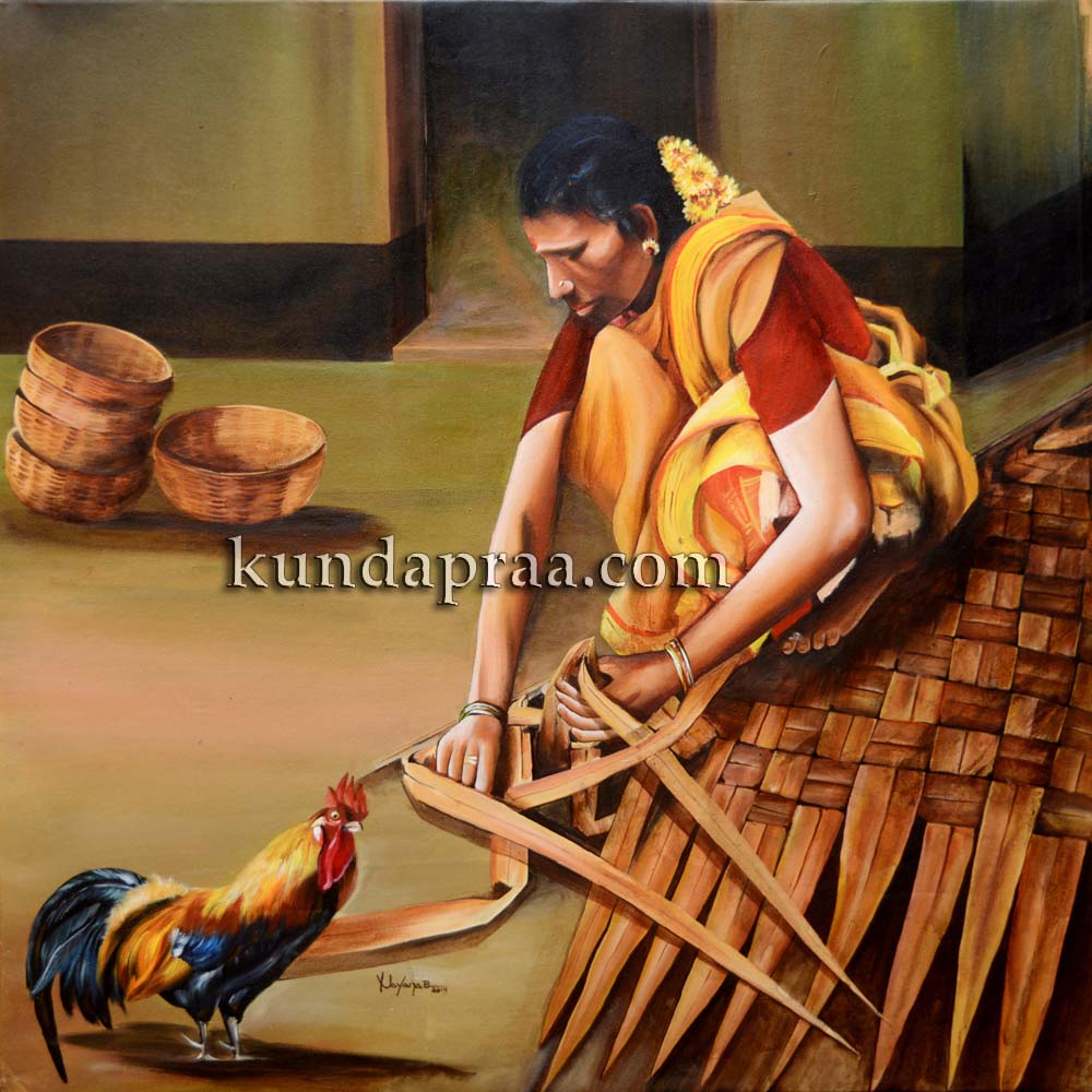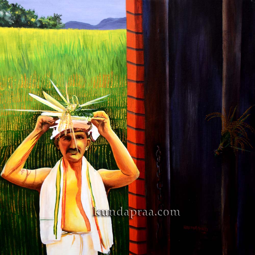 ಅಕ್ಕಿ ಮುಡಿ ಕಟ್ಟುವುದು, ಎಳನೀರು ಸೇವನೆಯಲ್ಲಿ ವೃದ್ಧ, ಗುಟ್ನ ಆಡುವ ಹುಡುಗಿಯರು, ಹೂ ಕಟ್ಟುತ್ತಿರುವ ಮಹಿಳೆ, ದನ-ಕರುಗಳೊಂದಿಗೆ ಸಾಗುವ ಮಹಿಳೆ, ಓಲೆಯಲ್ಲಿ ಬೆಂಕಿ ಮಾಡುತ್ತಿರುವ ತಾಯಿ, ಮೊಸರು ಕಡಿಯುತ್ತಿರುವ ಗೃಹಣಿ, ಲಗೋರಿಯಲ್ಲಿ ಗುರಿ ಹೊಡೆಯುತ್ತಿರುವ ಹುಡುಗ, ಮೀನು ಹಿಡಿಯುತ್ತಿರುವ ತುಂಟ ಮಕ್ಕಳು, ಐಸ್ ಕ್ಯಾಂಡಿ ಮಾರುವವ, ತಾಂಬೂಲ ಸೇವನೆಯಲಿ ಮನೆಯೊಡತಿ, ಮುಂಜಾನೆ ಎತ್ತಿನಗಾಡಿಯ ಪ್ರಯಾಣ, ಮಗುವಿನ ಎಣ್ಣೆ ಸ್ನಾನ, ಬುಗುರಿ ತಿರುಗಿಸುತ್ತಿರುವ ಬಾಲಕ, ತೋರಣ ಕಟ್ಟುವುದು, ಚಿಮಣಿ ದೀಪದಲ್ಲಿ ಓದುವ ಬಾಲಕಿ, ಮಡಲು ನೇಯುತ್ತಿರುವುದು, ಬಾಲ್ಯದ ಉಯ್ಯಾಲೆ, ಚಿಟ್ಟೆಯನ್ನು ಹಿಡಿಯುವ ಕ್ಷಣ, ಹಲಸಿನ ಹಣ್ಣಿನ ಸೇವನೆ, ಭೂತದ ಕೋಲ, ಚೆನ್ನಮಣೆಯ ಆಟ, ಟಯರಿನೊಂದಿಗಿನ ಓಟ, ದೇವರ ಮುಂದೆ ಭಕ್ತಿಯ ದೀಪ, ಕದಿರು ಕಟ್ಟುವ ಸಂಭ್ರಮಗಳ ಒಟ್ಟು ೨೫ ಕಲಾಕೃತಿಗಳಲ್ಲಿ ಅಕ್ರಾಲಿಕ್ ಕ್ಯಾನ್ವಾಸ್ನ ೧೮ ಕಲಾಕೃತಿ ಮತ್ತು 7 ಚಾರ್ಕೋಲ್ ಪೇಪರ್ ಮಾಧ್ಯಮzಲ್ಲಿ ರಚಿಸಲ್ಪಟ್ಟ 30×30 ಇಂಚಿನ ಕಲಾಕೃತಿಗಳು ಹಳ್ಳಿ ಸೊಗಡು, ದ್ಧಾ-ಭಕ್ತಿ, ವೃತ್ತಿ-ದಿನಚರಿ, ಬಾಲ್ಯದ ಮೋಜಿನ ಆಟ, ಕಠಿನ ಪರಿಶ್ರಮ, ಹಳ್ಳಿ ತಿನಸುಗಳ ಮರೆಯಲಾಗದ ಅವಿಸ್ಮರಣೀಯ ಕ್ಷಣ.