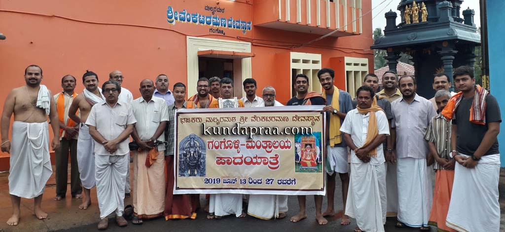 ಗಂಗೊಳ್ಳಿ ಗ್ರಾಪಂ ಸದಸ್ಯ ಬಿ.ಗಣೇಶ ಶೆಣೈ ಮತ್ತು ಜಿ.ಕೃಷ್ಣ ಪಡಿಯಾರ್ ನೇತೃತ್ವದಲ್ಲಿ ಗಣೇಶ ಕಿಣಿ, ಜಿ.ವಿಜೇಂದ್ರ ನಾಯಕ್, ವಿಜೇಶ ಮಲ್ಯ, ಎಂ.ಅನಂತ ಪೈ, ಶ್ರೀನಿವಾಸ ಎಂ., ಜಿ.ಪ್ರದೀಪ ಭಟ್, ಜಿ. ವಿಷ್ಣುದಾಸ ಭಟ್, ಭುವನೇಶ ಶ್ಯಾನುಭಾಗ್, ಸಾಯಿನಾಥ ಕಾರವಾರ, ಪ್ರಕಾಶ ಪ್ರಭು ಇವರು ಪಾದಯಾತ್ರೆ ಕೈಗೊಂಡಿದ್ದು, ಇವರೊಂದಿಗೆ ವಾಹನ ಚಾಲಕ ಮಧು ಗಂಗೊಳ್ಳಿ ಕೂಡ ಯಾತ್ರೆ ಆರಂಭಿಸಿದ್ದಾರೆ. ಯಾತ್ರಾರ್ಥಿಗಳು ಜೂನ್ ೨೭ರಂದು ಮಂತ್ರಾಲಯ ತಲುಪಲಿದ್ದಾರೆ.