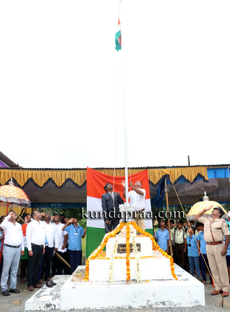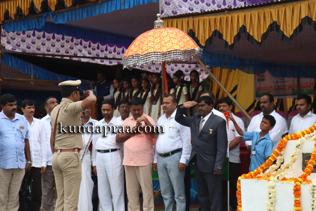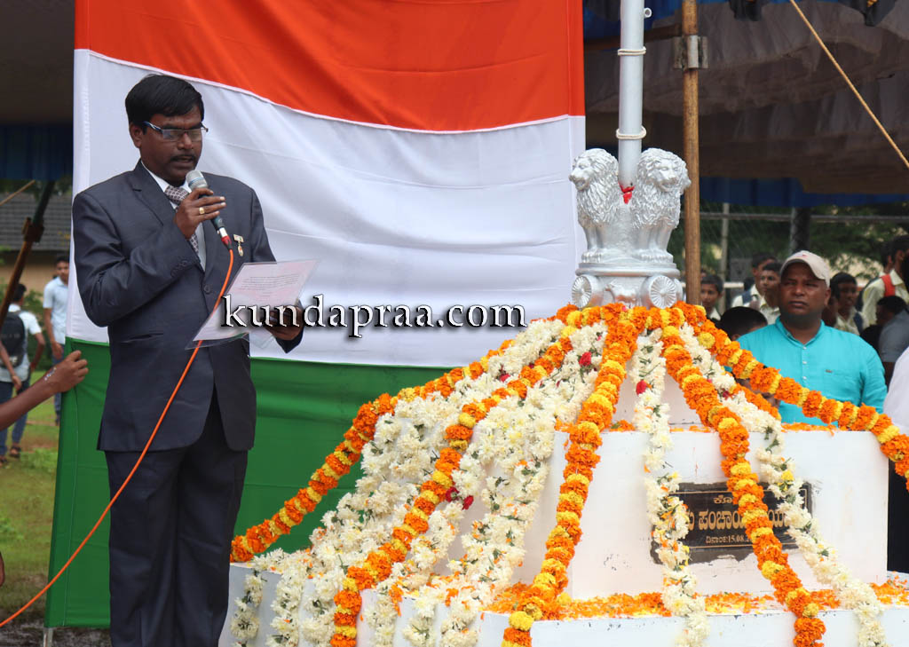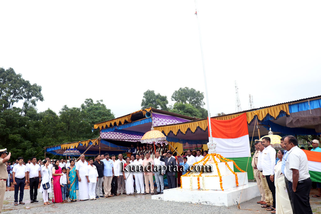 ಬೈಂದೂರು ತಹಶೀಲ್ದಾರ್ ಬಸಪ್ಪ ಪಿ. ಪೂಜಾರ್ ಧ್ವಜಾರೋಹಣ ನೇರವೇರಿಸಿ ಮಾತನಾಡಿ ದೇಶದ ಸ್ವಾತಂತ್ರ್ಯಕ್ಕಾಗಿ ಕೆಚ್ಚೆದೆಯಿಂದ ಹೋರಾಡಿದ ಧೀರರನ್ನು, ಅಸಂಖ್ಯಾತ ಹೋರಾಟಗಾರರನ್ನು ಅಗತ್ಯವಾಗಿ ಸ್ಮರಿಸಿಕೊಳ್ಳಬೇಕಿದೆ. ಎಲ್ಲರ ತ್ಯಾಗವನ್ನು ಮರೆಯದೇ, ನಾವುಗಳು ಭವ್ಯ ರಾಷ್ಟ್ರ ನಿರ್ಮಾಣದಲ್ಲಿ ತೊಡಿಸಿಕೊಳ್ಳಬೇಕಿದೆ.