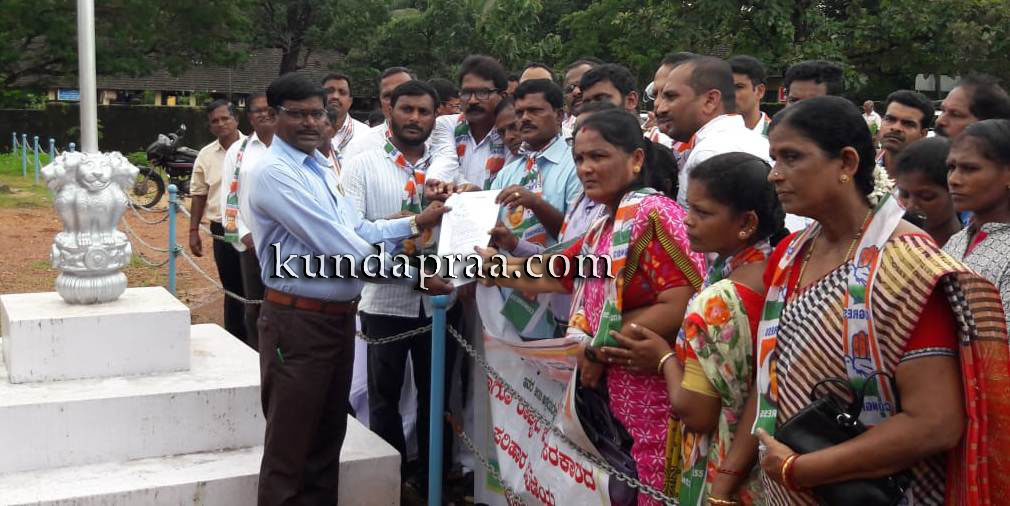 ಕುಂದಾಪುರ: ಬೆಲೆ ಏರಿಕೆ, ಆರ್ಥಿಕ ಬಿಕ್ಕಟ್ಟು, ನಿರುದ್ಯೋಗ ಸಮಸ್ಯೆ ಹಾಗೂ ಉತ್ತರ ಕರ್ನಾಟಕದ ನೆರೆ ಸಂತ್ರಸ್ತರಿಗೆ ಸೂಕ್ತ ಪರಿಹಾರ ಹಾಗೂ ಪರಿಹಾರ ವಿಳಂಬ ವಿರೋಧಿಸಿ ರಾಜ್ಯ ಹಾಗೂ ಕೇಂದ್ರ ಸರಕಾರದ ವಿರುದ್ಧ ಬೈಂದೂರು ಬ್ಲಾಕ್ ಹಾಗೂ ಯುವ ಕಾಂಗ್ರೆಸ್ ವತಿಯಿಂದ ತಾಲೂಕು ಕಛೇರಿ ಮುಂಭಾಗ ಧರಣಿ ನಡೆಸಿ ಬೈಂದೂರು ತಹಶಿಲ್ದಾರ್ ಬಸಪ್ಪ ಪಿ. ಪೂಜಾರ್ ಅವರ ಮೂಲಕ ಮನವಿ ಸಲ್ಲಿಸಲಾಯಿತು.