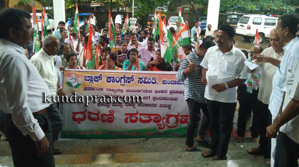 ಕುಂದಾಪುರ: ರಾಜ್ಯದಲ್ಲಿ ಪ್ರವಾಹದಿಂದ ಹಾನಿಗೊಳಗಾದ ಜಿಲ್ಲೆಗಳಿಗೆ ಇದುವರೆಗೆ ಕೇಂದ್ರ ಹಾಗೂ ರಾಜ್ಯ ಸರ್ಕಾರ ಪರಿಹಾರ ಬಿಡುಗಡೆ ಮಾಡಿಲ್ಲ ಎಂದು ಆರೋಪಿಸಿ ಕುಂದಾಪುರ ಬ್ಲಾಕ್ ಕಾಂಗ್ರೆಸ್ ಗುರುವಾರ ಕುಂದಾಪುರದಲ್ಲಿ ಪ್ರತಿಭಟನಾ ಮೆರವಣಿಗೆ ನಡೆಸಿ ಬಳಿಕ ಕುಂದಾಪುರ ತಹಶೀಲ್ದಾರರಿಗೆ ಮನವಿ ನೀಡಿ ಸರ್ಕಾರಕ್ಕೆ ಈಗೀಂದಗಲೇ ಪರಿಹಾರ ಬಿಡುಗಡೆ ಮಾಡುವಂತೆ ಸರಕಾರಕ್ಕೆ ಆಗ್ರಹಿಸಲಾಯಿತು.