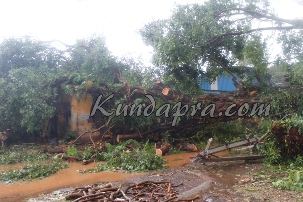 ಸುಮಾರು 300 ವರ್ಷಗಳು ಹಿಂದಿನ ಅರಳಿ ಮರವು ಗಾಳಿಯ ನೆಲಕ್ಕುರುಳಿದ್ದು ಕೆಳಗೆ ನಿಲ್ಲಿನಿದ್ದ ಚಂದ್ರ, ಸೀತಾರಾಮ ಶೆಟ್ಟಿ, ಆನಂದ ಎಂಬುವವರ ಬೈಕ್ ಹಾಗೂ ಸಬೀರ್ ಎಂಬುವವರ ಕೋಳಿ ಅಂಗಡಿ, ನಾಗ ದೇವಾಡಿಗರ ತರಕಾರಿ ಅಂಗಡಿ ಹಾಗೂ ಇನ್ನೊರ್ವರಿಗೆ ಸೇರಿದ ಕುರಿ ಅಂಗಡಿಗೂ ಹಾನಿಯಾನಿದೆ.