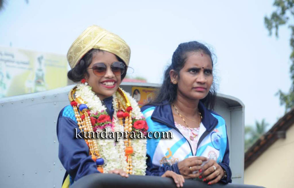 ಕುಂದಾಪುರ: ಮಲೇಷ್ಯಾ ಎಸ್ಜಿಎಸ್ ಇನ್ಸ್ಟಿಟ್ಯೂಟ್ ಆಫ್ ಯೋಗ ಫೌಂಡೇಶನ್ ಕಾಲೇಜ್ &ರಿಸರ್ಚ್ ಸೆಂಟರ್ನಲ್ಲಿ ನಡೆದ ಟ್ರ್ಯಾಕ್ಸ್ ಇಂಟರ್ನ್ಯಾಶನಲ್ ಯೋಗದಲ್ಲಿ ಅಥ್ಲೆಟಿಕ್ ಯೋಗ ಚಾಂಪಿಯನ್ಶಿಪ್ ವಿಭಾಗದಲ್ಲಿ ಮೊದಲ ಸ್ಥಾನ ಹಾಗೂ ಚಿನ್ನದ ಪದಕ ಮತ್ತು ಆರ್ಟಿಸ್ಟಿಕ್ ಯೋಗ ಚಾಂಪಿಯನ್ಶಿಪ್ನಲ್ಲಿ ದ್ವಿತೀಯ ಸ್ಥಾನದೊಂದಿಗೆ ಬೆಳ್ಳಿ ಪದಕ ಗೆದ್ದು ಮರಳಿದ ಮರವಂತೆ ಧನ್ವಿ ಪೂಜಾರಿಗೆ ಗುರುವಾರ ಕುಂದಾಪುರ ತಾಲೂಕು ಬಿಲ್ಲವ ಸಂಘ, ಸೇರಿದಂತೆ ವಿವಿಧ ಸಂಘ-ಸಂಸ್ಥೆಗಳ ವತಿಯಿಂದ ಕುಂದಾಪುರ ಶಾಸ್ತ್ರೀ ವೃತ್ತದಲ್ಲಿ ಧನ್ವಿ ಪೂಜಾರಿಗೆ ಅದ್ದೂರಿ ಸ್ವಾಗತ ನೀಡಿ ತೆರದ ವಾಹನದಲ್ಲಿ ಮರವಂತೆಯವರೆಗೆ ಮೆರವಣಿಗೆ ಮೂಲಕ ಕರೆದೊಯ್ದರು.