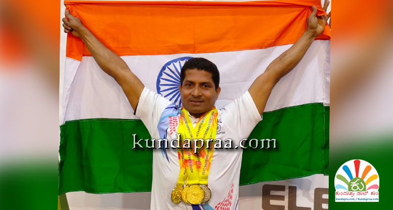 ಕುಂದಾಪುರ: ಕಜಾಕಿಸ್ತಾನದಲ್ಲಿ ನಡೆದ ಅಂತಾರಾಷ್ಟ್ರೀಯ ಮಟ್ಟದ ಏಷ್ಯಾನ್ ಕ್ಲಾಸಿಕ್ ಪವರ್ ಲಿಪ್ಟ್ಂಗ್ ಸ್ಪರ್ಧೆಯಲ್ಲಿ ಭಾರತದ ಪ್ರತಿನಿಧಿಯಾಗಿ ಭಾಗವಹಿಸಿದ್ದ ಕುಂದಾಪುರದ ಸತೀಶ್ ಖಾವಿ೯ ಅವರು ಮೂರು ಚಿನ್ನ ಹಾಗೂ ಒಂದು ಬೆಳ್ಳಿಯ ಪದಕವನ್ನು ಗೆದ್ದುಕೊಂಡಿದ್ದಾರೆ.