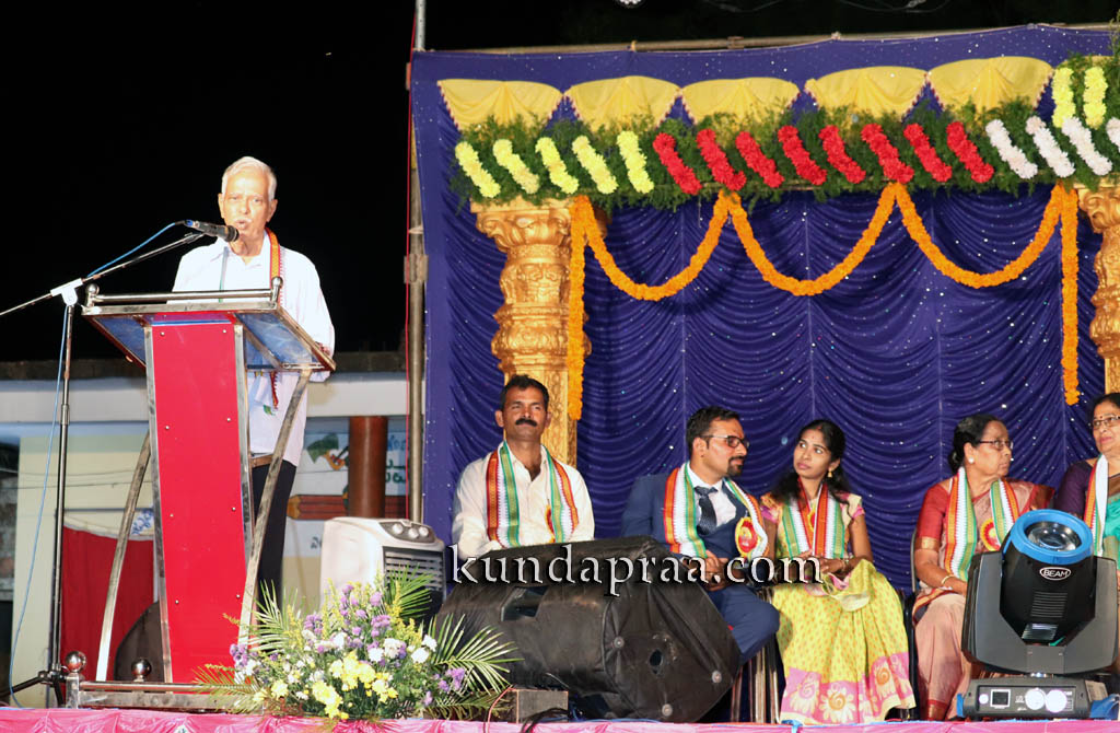 ಅವರು ಬುಧವಾರ ಬಿಜೂರು ಶಾಲಾ ಮೈದಾನದಲ್ಲಿ ಬಿಜೂರು ನಂದಿಕೇಶ್ವರ ಫ್ರೆಂಡ್ಸ್ ಆಶ್ರಯದಲ್ಲಿ ಜರುಗಿದ ಕನ್ನಡ ರಾಜ್ಯೋತ್ಸವ ಪ್ರಶಸ್ತಿ ವಿಜೇತ ಪುರಸ್ಕೃತ ಬಿಜೂರು ಗೋವಿಂದಪ್ಪ ಮೋಹನ್ದಾಸ್ ಅವರಿಗೆ ಹುಟ್ಟೂರ ಸನ್ಮಾನ ಕಾರ್ಯಕ್ರಮದಲ್ಲಿ ಅಭಿನಂದನಾ ಭಾಷಣ ಮಾಡಿದರು.