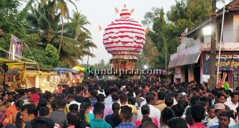 ಬೈಂದೂರು: ಇತಿಹಾಸ ಪ್ರಸಿದ್ಧ ಉಪ್ಪುಂದ ಶ್ರೀ ದುರ್ಗಾಪರಮೇಶ್ವರಿ ದೇವಳದ ವಾರ್ಷಿಕ ಮನ್ಮಹಾ ರಥೋತ್ಸವ ಉಪ್ಪುಂದ ಕೊಡಿಹಬ್ಬ ಶುಕ್ರವಾರ ಸಂಭ್ರಮ, ಸಡಗರದಿಂದ ಜರುಗಿತು.