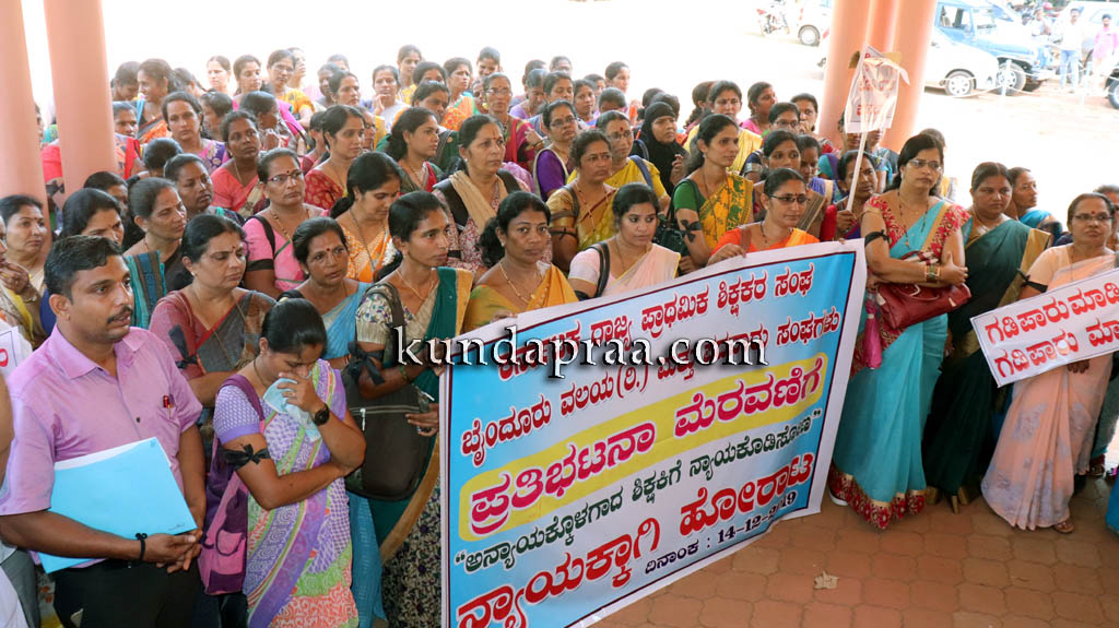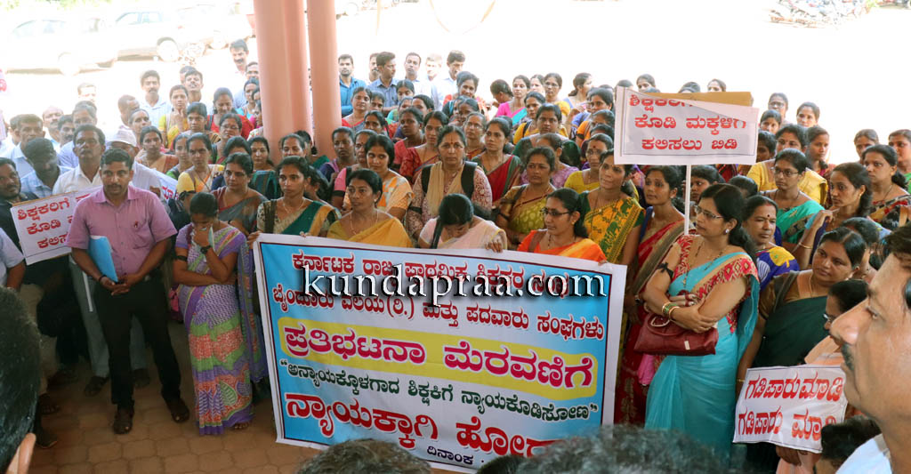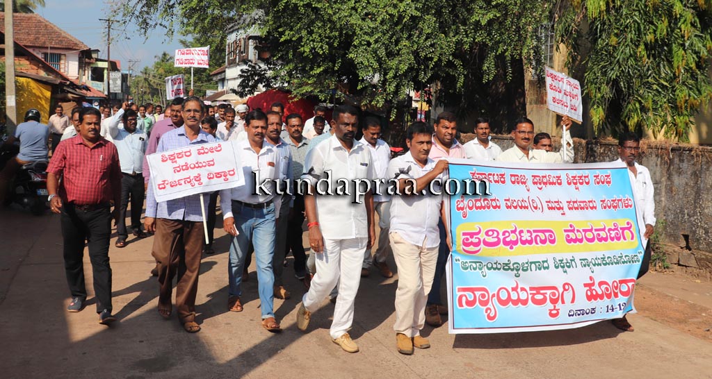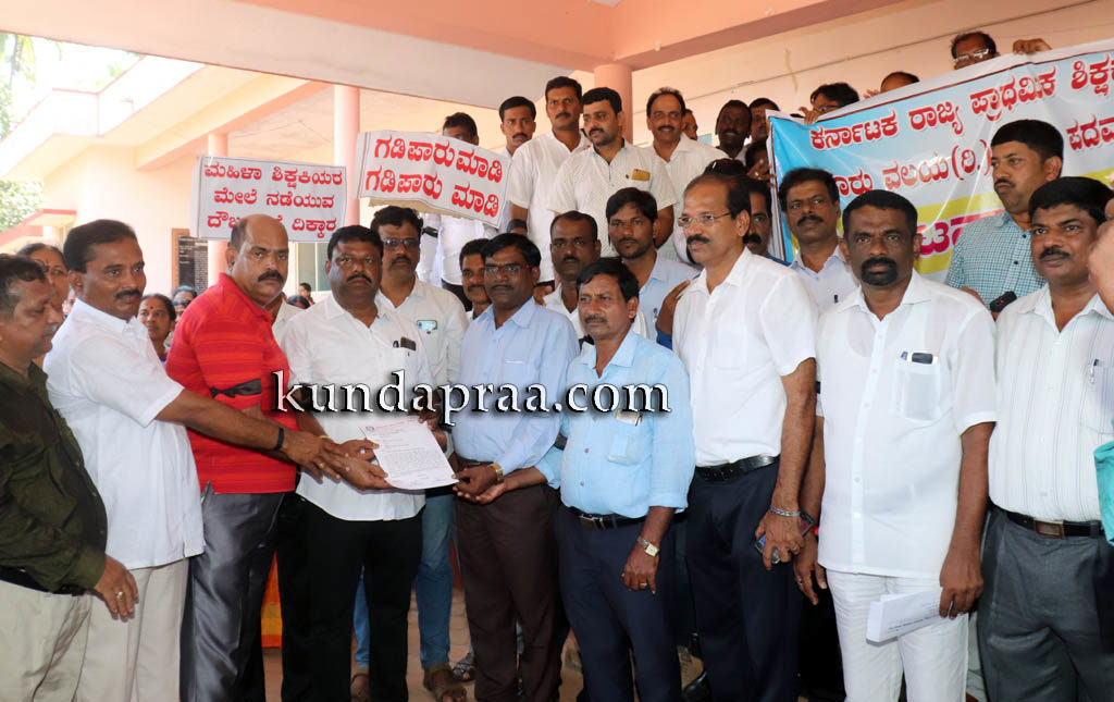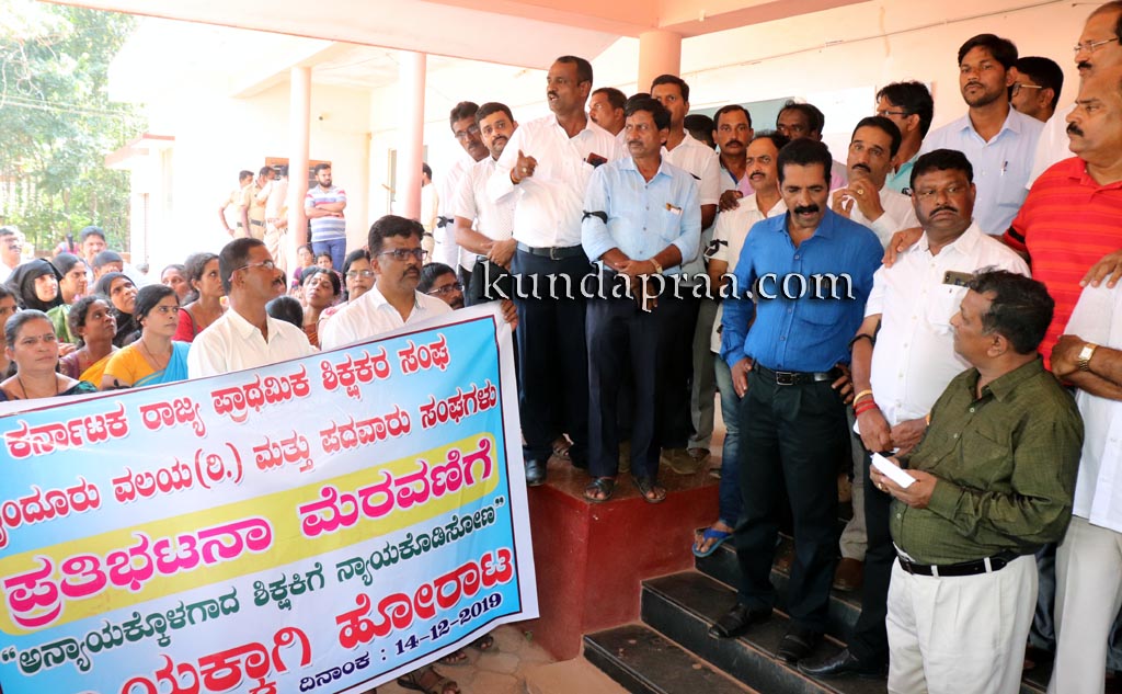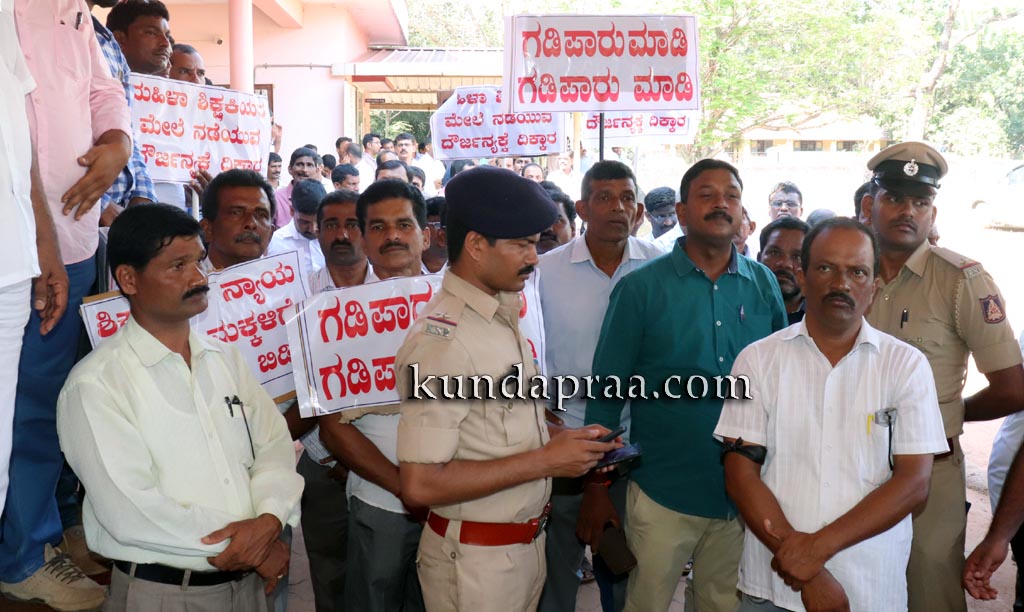 ಪ್ರತಿಭಟನೆಯ ನೇತೃತ್ವ ವಹಿಸಿದ್ದ ಕರ್ನಾಟಕ ರಾಜ್ಯ ಪ್ರಾಥಮಿಕ ಶಾಲಾ ಶಿಕ್ಷಕರ ಸಂಘ ಬೈಂದೂರು ವಲಯ ಅಧ್ಯಕ್ಷ ವಿಶ್ವನಾಥ ಶೆಟ್ಟಿ ಮಾತನಾಡಿ ಉಪ್ಪುಂದ ಸರಕಾರಿ ಉರ್ದು ಶಾಲೆಯಲ್ಲಿ ಹಿಂದೆ ನಾಲ್ಕು ಜನ ಖಾಯಂ ಶಿಕ್ಷಕರಿದ್ದರು. ಆದರೆ ಎಲ್ಲರಿಗೂ ಕಿರುಕುಳ ನೀಡಿದ್ದರಿಂದ ಅವರು ವರ್ಗಾವಣೆ ತೆಗೆದುಕೊಂಡಿದ್ದರು. ಶಾಲೆಯ ಎಸ್ಡಿಎಂಸಿ ಅಧ್ಯಕ್ಷ ಹಿಂದೆ ಮಮತಾ ಎಂಬ ಶಿಕ್ಷಕಿಗೆ ಹಲ್ಲೆ ನಡೆಸಿದ್ದ. ಈಗ ಮಲ್ಲಿಕಾ ಎಂಬ ಶಿಕ್ಷಕಿಗೆ ಹಲ್ಲೆ ನಡೆಸಿದ್ದಾರೆ. ಇನ್ನೋರ್ವ ಶಿಕ್ಷಕಿಯಲ್ಲಿ ಅಗತ್ಯವಾಗಿ ಮಾಹಿತಿ ಹಕ್ಕು ಮೂಲಕ ಕಿರುಕುಳ ನೀಡಲು ತಯಾರಾಗಿದ್ದ. ಎಸ್ಡಿಎಂಸಿ ಅವರಿಂದಲೇ ಶಿಕ್ಷಕರಿಗೆ ಕಿರುಕುಳವಾಗುತ್ತಿರುವುದು ವಿಷಾದನೀಯ ಎಂದ ಅವರು ಪೊಲೀಸ್ ಇಲಾಖೆ ಕಾರ್ಯಪ್ರವೃತ್ತರಾಗಿ ಆರೋಪಿಯನ್ನು ಬಂಧಿಸಬೇಕು ಮತ್ತು ಗಡಿಪಾರು ಮಾಡಬೇಕು ಎಂಬುದು ಶಿಕ್ಷಕರ ಆಗ್ರಹವಾಗಿದ್ದು, ನಮ್ಮ ಬೇಡಿಕೆ ಈಡೇರದೇ ಹೋದರೆ ಶಾಲೆಗೆ ಹೋಗುವ ಬದಲು ಶಿಕ್ಷಣಾಧಿಕಾರಿಗಳ ಕಛೇರಿಯಲ್ಲಿ ಧರಣಿ ಕೂರುತ್ತೇವೆ ಎಂದು ಎಚ್ಚರಿಸಿದರು.