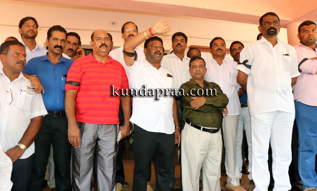 ಪ್ರತಿಭಟನೆಯಲ್ಲಿ ಜಿಲ್ಲಾ ಸರಕಾರಿ ನೌಕರರ ಸಂಘದ ಅಧ್ಯಕ್ಷ ಸುಬ್ರಹ್ಮಣ್ಯ ಶೇರುಗಾರ್, ಜಿಲ್ಲಾ ಪ್ರಾಥಮಿಕ ಶಾಲಾ ಶಿಕ್ಷಕರ ಸಂಘ ಅಧ್ಯಕ್ಷ ರವೀಂದ್ರ ಹೆಗ್ಡೆ, ತಾಲೂಕು ಸರಕಾರಿ ನೌಕರರ ಸಂಘದ ಅಧ್ಯಕ್ಷ ದಿನಕರ ಶೆಟ್ಟಿ, ಕುಂದಾಪುರ ತಾಲೂಕು ಶಿಕ್ಷಕರ ಸಂಘದ ಅಧ್ಯಕ್ಷ ಸದಾರಾಮ ಶೆಟ್ಟಿ, ಪ್ರೌಢಶಾಲಾ ಸಹಶಿಕ್ಷಕರ ಸಂಘ ಜಿಲ್ಲಾಧ್ಯಕ್ಷ ಕಿರಣ ಹೆಗ್ಡೆ ಹಾಗೂ ಜಿಲ್ಲೆಯ ವಿವಿಧ ಪದವಾರು ಸಂಘಗಳ ಪದಾಧಿಕಾರಿಗಳು ಪ್ರತಿಭಟನೆಯಲ್ಲಿ ಭಾಗವಹಿಸಿದ್ದರು. /ಕುಂದಾಪ್ರ ಡಾಟ್ ಕಾಂ/ ಕುಂದಾಪ್ರ ಡಾಟ್ ಕಾಂ.