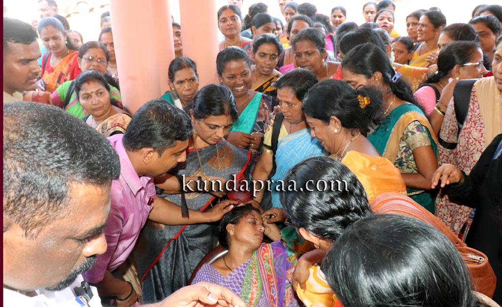 ಬೈಂದೂರು ತಹಶೀಲ್ದಾರರ ಕಛೇರಿಯಲ್ಲಿ ಪ್ರತಿಭಟನೆ ನಡೆಯುತ್ತಿದ್ದ ಸಂದರ್ಭ ಶಿಕ್ಷಕಿ ಮಲ್ಲಿಕಾ ಶೆಟ್ಟಿ ಪ್ರಜ್ಞೆ ತಪ್ಪಿ ಬಿದ್ದ ಘಟನೆಯೂ ನಡೆಯಿತು. ಪ್ರತಿಭಟನೆಯ ಉದ್ದಕ್ಕೂ ಆಳುತ್ತಿದ್ದ ಅವರು ನಿಶಕ್ತರಾಗಿದ್ದು ಕಂಡುಬಂತು. ಕೂಡಲೇ ಅವರನ್ನು ಸಮೀಪದ ಸರಕಾರಿ ಆಸ್ಪತ್ರೆಗೆ ದಾಖಲಿಸಲಾಯಿತು. ಈ ಮಧ್ಯೆ ಶಾಲೆಯಲ್ಲಿನ ಕಿರುಕುಳದಿಂದಾಗಿ ಪತ್ನಿ ಮಾನಸಿಕವಾಗಿ ನೊಂದಿದ್ದು, ಮನೆಯಲ್ಲಿಯೂ ನೆಮ್ಮದಿಯಿಂದ ಇರಲಾಗದ ಸ್ಥಿತಿ ಇದೆ ಎಂದು ಮಲ್ಲಿಕಾ ಅವರ ಪತಿ ದಿನೇಶ್ ಶೆಟ್ಟಿ ಅವರು ಕುಂದಾಪ್ರ ಡಾಟ್ ಕಾಂನೊಂದಿಗೆ ಅಳಲು ತೋಡಿಕೊಂಡರು. ಕುಂದಾಪ್ರ ಡಾಟ್ ಕಾಂ.