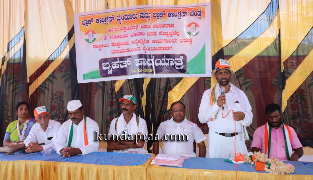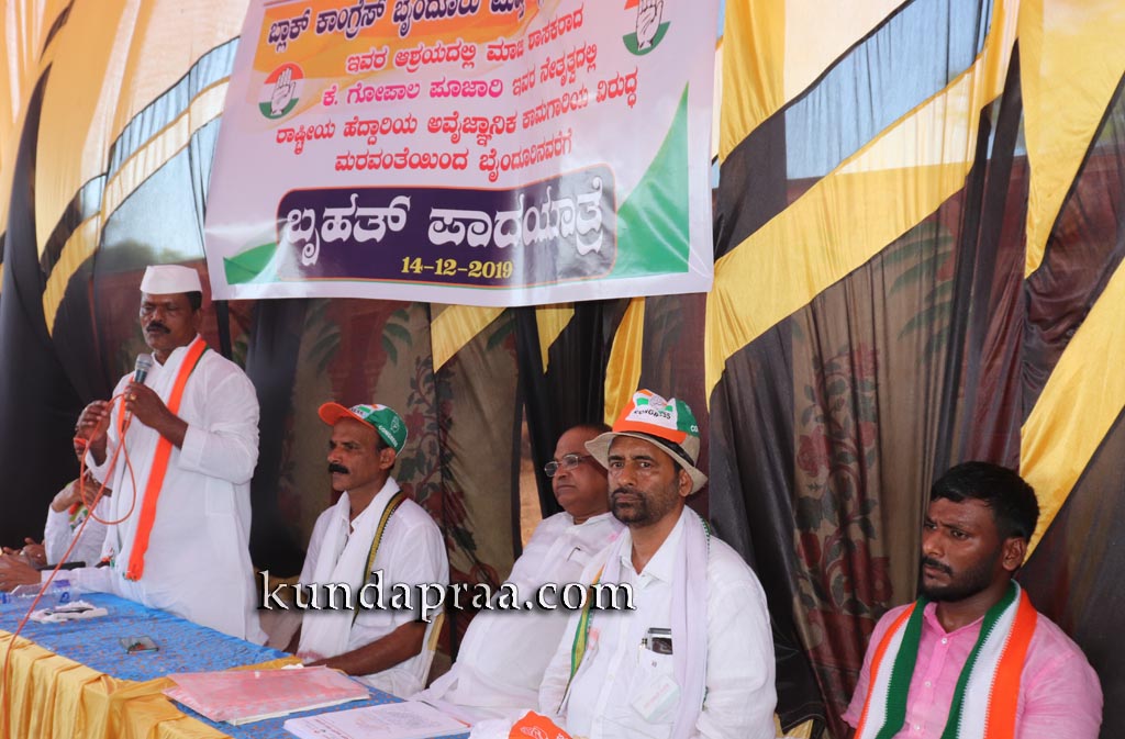 ಅವರು ಶನಿವಾರ ಬೈಂದೂರು ವಿಧಾನಸಭಾ ಕ್ಷೇತ್ರ ವ್ಯಾಪ್ತಿಯ ತಲ್ಲೂರಿನಿಂದ ಶಿರೂರು ವರೆಗಿನ ಚತುಷ್ಪಥ ಹೆದ್ದಾರಿ ಕಾಮಗಾರಿ ತೀರ ಅವ್ಯವಸ್ಥಿತವಾಗಿ ನಡೆದಿದ್ದು ಅದನ್ನು ಸರಿಪಡಿಸಬೇಕು ಎಂದು ಆಗ್ರಹಿಸಿ ಮರವಂತೆಯಿಂದ ಬೈಂದೂರು ವರೆಗೆ ಹಮ್ಮಿಕೊಂಡ ಪಾದಯಾತ್ರೆಯ ಪ್ರತಿಭಟನಾ ಸಭೆಯ ನೇತೃತ್ವ ವಹಿಸಿ ಮಾತನಾಡಿ ಕಾಮಗಾರಿ ಅಪೂರ್ಣವಾಗಿರುವಾಗಲೇ ಶಿರೂರು ಗಡಿಭಾಗದಲ್ಲಿ ಟೋಲ್ ಸಂಗ್ರಹಕ್ಕೆ ಐಆರ್ಬಿ ಕಂಪೆನಿ ಅಣಿಯಾಗುತ್ತಿದೆ. ಇದು ಸರಿಯಾದ ಕ್ರಮವಲ್ಲ. ಜಿಲ್ಲಾಧಿಕಾರಿಗಳು ಹಾಗೂ ಪೊಲೀಸ್ ವರಿಷ್ಠಾಧಿಕಾರಿಗಳು ಈ ಬಗ್ಗೆ ಕ್ರಮವಹಿಸಬೇಕು. ಜನರ ಸಮಸ್ಯೆಯನ್ನು ಆಲಿಸಿ, ನಿವಾರಣೆಗೆ ಕ್ರಮಕೈಗೊಳ್ಳಬೇಕು. ಹೆದ್ದಾರಿ ಕ್ರಮಬದ್ಧವಾಗಿ ನಿರ್ಮಾಣವಾಗುವ ಮೊದಲೇ ಟೋಲ್ ಸಂಗ್ರಹಕ್ಕೆ ಇಳಿದರೆ ಕಾಂಗ್ರೆಸ್ ಮತ್ತೆ ಪ್ರತಿಭಟನೆಗೆ ಮುಂದಾಗಲಿದೆ ಎಂದು ಎಚ್ಚರಿಸಿದರು.