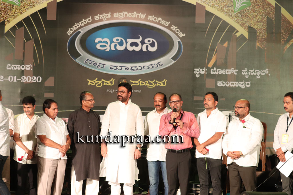 ಅವರು ಕಲಾಕ್ಷೇತ್ರ ಕುಂದಾಪುರ ದಶಮ ಸಂಭ್ರಮ ಕಾರ್ಯಕ್ರಮದ ಸಂದರ್ಭ ಇಲ್ಲಿನ ಬೋರ್ಡ್ ಹೌಸ್ಕೂಲ್ ಬಯಲು ರಂಗಮಂದಿರದಲ್ಲಿ ಆಯೋಜಿಸಲಾದ ಇನಿದದನಿ ಕಾರ್ಯಕ್ರಮದಲ್ಲಿ ಸನ್ಮಾನ ಸ್ವೀಕರಿಸಿ ಮಾತನಾಡಿ ಅದ್ಬುತ ಸಂಗೀತ ಪ್ರತಿಭೆಗಳನ್ನು ಒಳಗೊಂಡು ಆಯೋಜಿಸಲಾದ ಇನಿದನಿ ಕಾರ್ಯಕ್ರಮ, ಸುಂದರ ವೇದಿಕೆ ಹಾಗೂ ಸಾಕ್ಷಿಯಾದ ಇಲ್ಲಿನ ಪ್ರೇಕ್ಷಕರು ಎಲ್ಲವೂ ಖುಷಿ ನೀಡಿತು ಎಂದರು.
