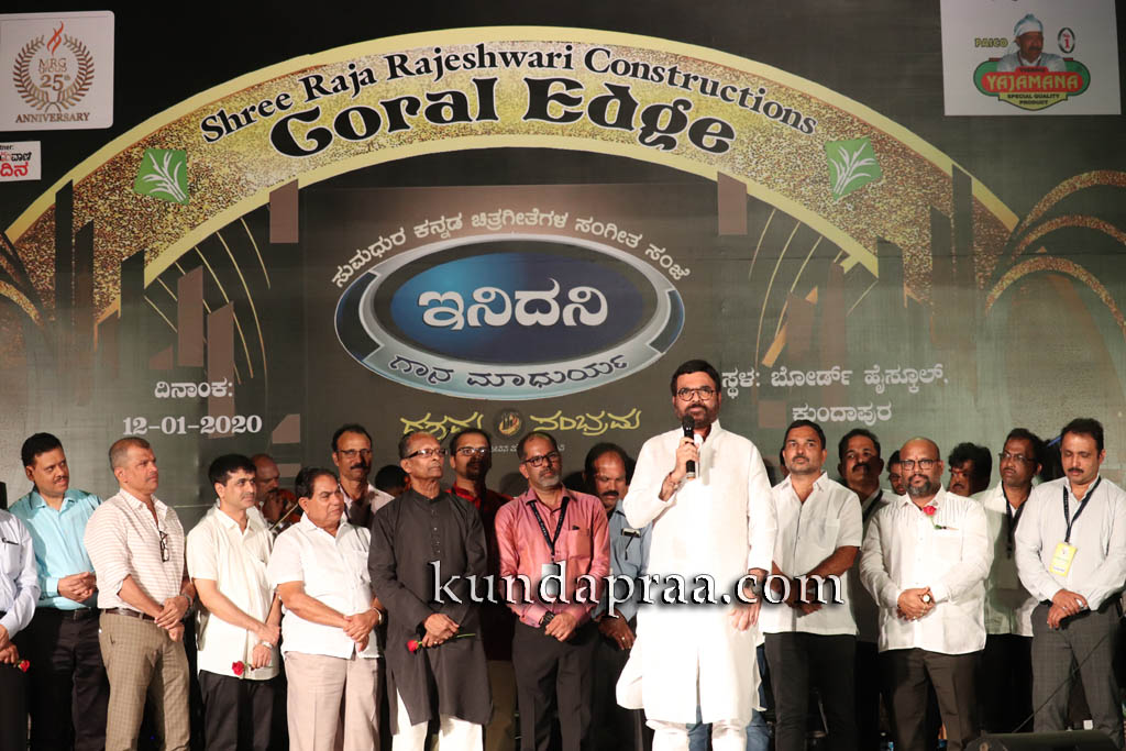 ಎಂಆರ್ಜಿ ಗ್ರೂಪ್ ಮಾಲಕ, ಕನ್ನಡ ರಾಜ್ಯೋತ್ಸವ ಪ್ರಶಸ್ತಿ ಪುರಸ್ಕೃತ ಕೆ. ಪ್ರಕಾಶ್ ಶೆಟ್ಟಿ ಅವರನ್ನು ಗೌರವಿಸಲಾಯಿತು. ವಿಶಾಲವಾದ ಇನಿದನಿ ವೇದಿಕೆ, ಖ್ಯಾತ ಸಂಗೀತ ಕಲಾವಿದರುಗಳಿಂದ ಹಳೆ ಕನ್ನಡ ಚಿತ್ರಗೀತೆಗಳ ಗಾಯನ ನೆರೆದಿದ್ದು ಎಂಟು ಸಾವಿರಕ್ಕೂ ಅಧಿಕ ಕಲಾವಿದರುಗಳನ್ನು ರಂಜಿಸಿತು.