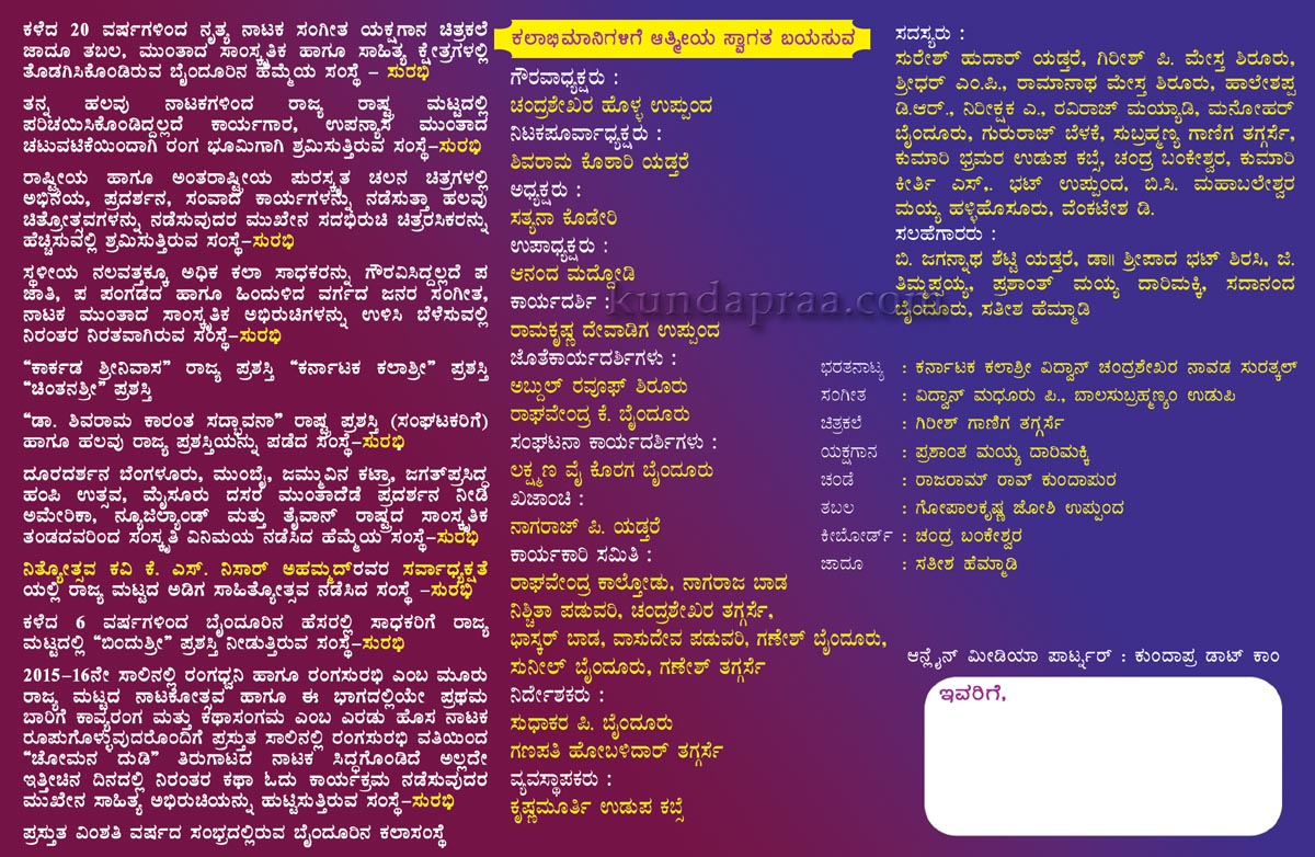 ಸುರಭಿ ಬೈಂದೂರು ಅಧ್ಯಕ್ಷ ಸತ್ಯನಾ ಕೊಡೇರಿ ಅಧ್ಯಕ್ಷತೆ ವಹಿಸಿದ್ದರು. ಉಪಾಧ್ಯಕ್ಷ ಆನಂದ ಮದ್ದೋಡಿ, ಸಲಹೆಗಾರರಾದ ಜಿ. ತಿಮ್ಮಪ್ಪಯ್ಯ, ನಿರ್ದೇಶಕ ಸುಧಾಕರ ಪಿ., ಕಾರ್ಯದರ್ಶಿ ರಾಮಕೃಷ್ಣ ದೇವಾಡಿಗ ಉಪ್ಪುಂದ ಉಪಸ್ಥಿತರಿದ್ದರು.