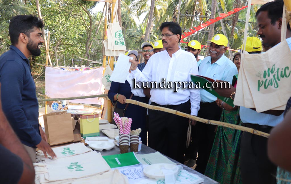 ಅಲ್ಲಿ ಪ್ಲಾಸ್ಟಿಕ್ ಬಳಸದೇ ತಯಾರಿಸಿದ ಡಿಸೈನ್ ಡಿಸೈನ್ನಲ್ಲಿ ಹಾಳೆ ತಟ್ಟೆಗಳು, ಪ್ಲೇಟ್, ಹೂಕುಂಡ, ಪೆನ್, ಪೆನ್ಸಿಲ್, ಮನೆ ಅಲಂಕಾರಿಕಾ ವಸ್ತುಗಳು, ಪರಿಸರ ಸ್ನೇಹಿ ಬ್ಯಾಗ್, ಖಾದಿ ಬಟ್ಟೆಗಳು, ಮೊಬೈಲ್ ಕವರ್, ಪಾಕೇಟ್, ಬೆತ್ತ-ಬಿದಿರಿನಿಂದ ತಯಾರಿಸಿ ವಿವಿಧ ಕರಕುಶಲ ವಸ್ತುಗಳು ನೋಡುಗರ ಕುತೂಹಲ ಗರಿಗೆದರುವಂತೆ ಮಾಡಿದ್ದವು. ಕುಂದಾಪ್ರ ಡಾಟ್ ಕಾಂ ವರದಿ.