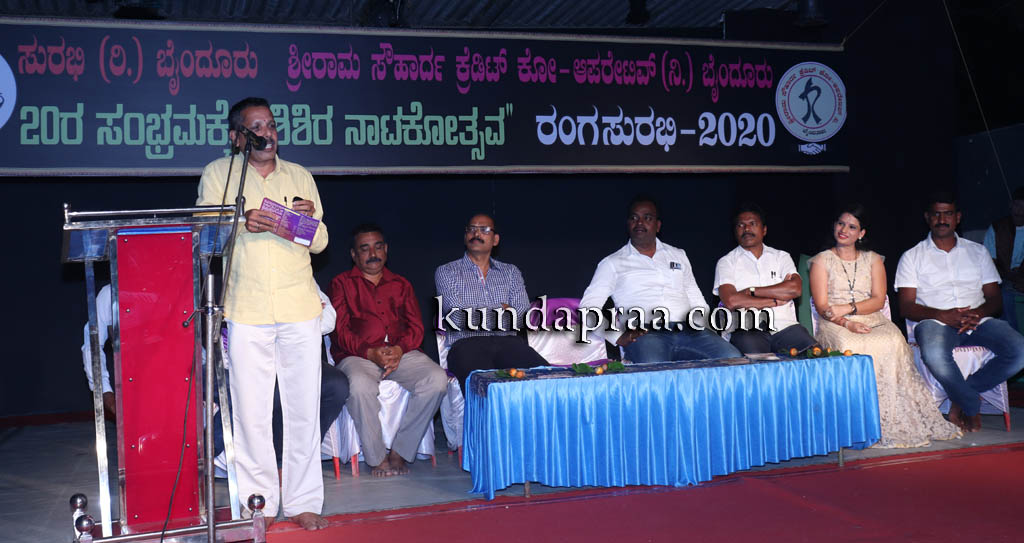 ಅವರು ಸುರಭಿ ರಿ. ಬೈಂದೂರು ಹಾಗೂ ಶ್ರೀರಾಮ ಸೌಹಾರ್ದ ಕ್ರೆಡಿಟ್ ಕೋ-ಆಪರೇಟಿವ್ ನಿ. ಬೈಂದೂರು ಸಂಯುಕ್ತಾಶ್ರಯದಲ್ಲಿ ಆಯೋಜಿಸಲಾದ ರಂಗ ಸುರಭಿ ೨೦೨೦ – ಶಿಶಿರ ನಾಟಕೋತ್ಸವ ಎರಡನೇ ದಿನದ ಅಧ್ಯಕ್ಷತೆ ವಹಿಸಿ ಮಾತನಾಡಿದರು.
