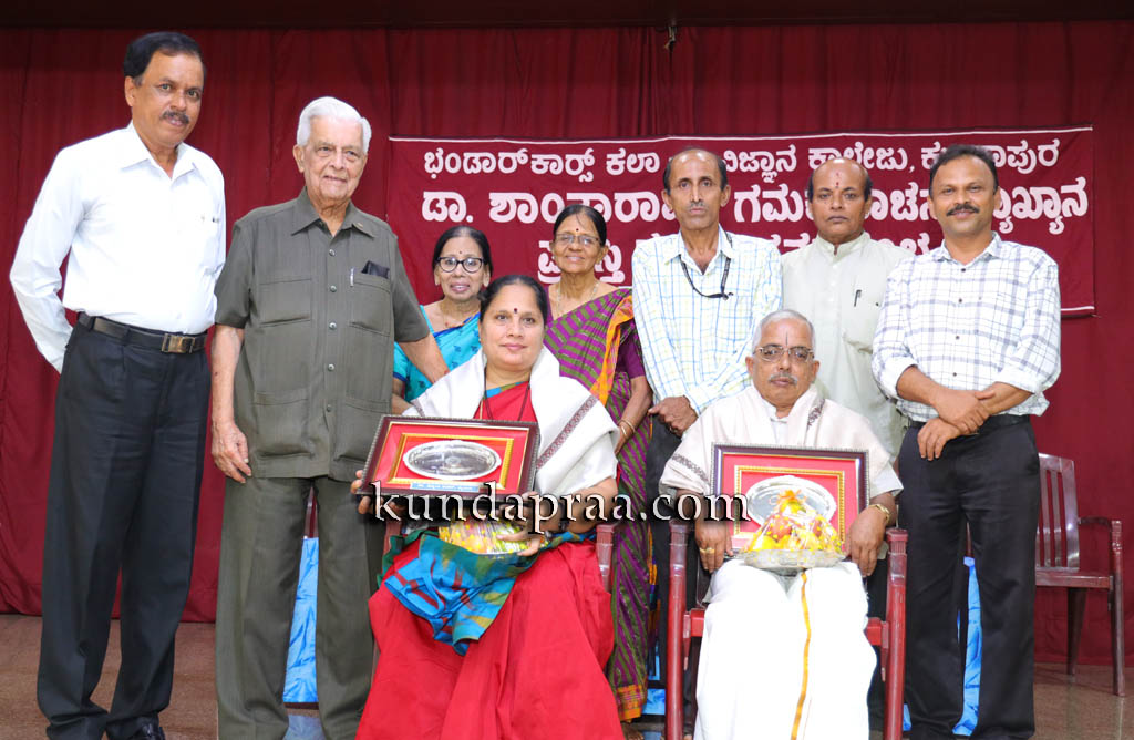 ಕುಂದಾಪುರ: ಇಲ್ಲಿನ ಭಂಡಾರ್ಕಾರ್ಸ್ ಕಾಲೇಜಿನಲ್ಲಿ ಡಾ. ಹೆಚ್. ಶಾಂತಾರಾಮ್ ವಾಚನ ಪ್ರಶಸ್ತಿಯನ್ನು ಹೆಚ್. ಯಜ್ಞೇಶ ಆಚಾರ್ ಸುರತ್ಕಲ್ ಮತ್ತು ವ್ಯಾಖ್ಯಾನ ಪ್ರಶಸ್ತಿಯನ್ನು ಡಾ.ಜ್ಯೋತಿ ಶಂಕರ್, ಮೈಸೂರು ಇವರಿಗೆ ಅಕಾಡೆಮಿ ಆಫ್ ಜನರಲ್ ಎಜುಕೇಶನ್, ಮಣಿಪಾಲ ಇದರ ಆಡಳಿತಾಧಿಕಾರಿ ಹೆಚ್. ಶಾಂತಾರಾಮ್ ಅವರು ಪ್ರದಾನ ಮಾಡಿದರು.