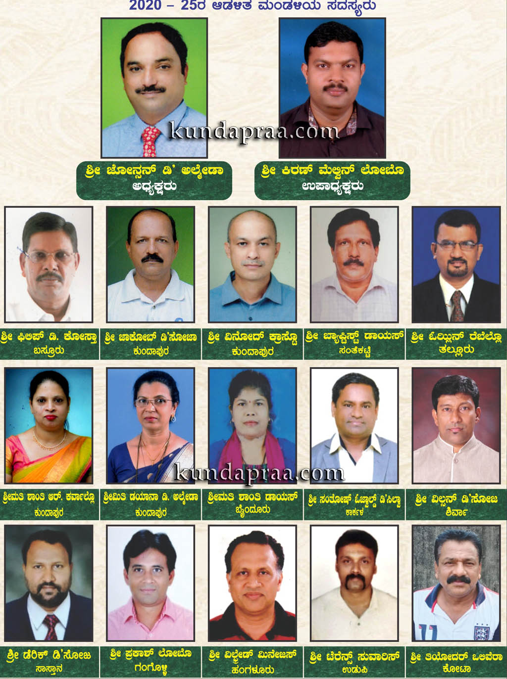 ಉಪಾಧ್ಯಕ್ಷರಾಗಿ ಕಿರಣ್ ಮೆಲ್ವಿನ್ ಲೋಬೊ, ಪಡುಕೋಣೆ ಆಯ್ಕೆಯಾದರು. ಅಧ್ಯಕ್ಷ, ಉಪಾಧ್ಯಕ್ಷರ ಆಯ್ಕೆ ಪ್ರಕ್ರಿಯೆ ಫೆ.೧೫ರಂದು ನಡೆಯಿತು. ಈ ಸಂದರ್ಭದಲ್ಲಿ ನಿರ್ದೇಶಕರಾದ ಫಿಲಿಪ್ ಡಿಕೋಸ್ತಾ, ಬಸ್ರೂರು, ಜೇಕಬ್ ಡಿ’ಸೋಜ, ಕುಂದಾಪುರ, ವಿನೋದ್ ಕ್ರಾಸ್ಟೊ, ಕುಂದಾಪುರ, ಬ್ಯಾಪ್ಟಿಸ್ಟ್ ಡಾಯಸ್, ಸಂತೆಕಟ್ಟೆ, ಡಾಯ್ನಾ ಡಿ’ಆಲ್ಮೇಡಾ, ಕುಂದಾಪುರ, ಶಾಂತಿ ಆರ್. ಕರ್ವಾಲ್ಲೊ, ಕುಂದಾಪುರ, ಶಾಂತಿ ಡಾಯಸ್, ಬೈಂದೂರು, ಪ್ರಕಾಶ್ ಲೋಬೊ, ಗಂಗೊಳ್ಳಿ, ವಿಲ್ಸನ್ ಡಿ’ಸೋಜ, ಶಿರ್ವಾ, ಸಂತೋಷ್ ಓಜ್ವಾಲ್ಡ್ ಡಿ’ಸಿಲ್ವಾ, ಕಾರ್ಕಳ, ಓಝ್ಲಿನ್ ರೆಬೆಲ್ಲೊ, ತಲ್ಲೂರು, ವಿಲ್ಫ್ರೇಡ್ ಮಿನೇಜಸ್, ಹಂಗಳೂರು, ತಿಯೋದರ್ ಒಲಿವೆರಾ, ಕೋಟಾ, ಟೆರೆನ್ಸ್ ಸುವಾರಿಸ್, ಉಡುಪಿ, ಡೆರಿಕ್ ಡಿ’ಸೋಜ, ಸಾಸ್ತಾನ ಉಪಸ್ಥಿತರಿದ್ದರು.
