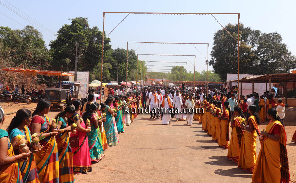 ವಿನಾಯಕ ಮೆರ್ಟ ಸ್ವಾಗತಿಸಿದರು. ಭಜನಾ ಮಂಡಳಿಯ ಅಧ್ಯಕ್ಷ ಶ್ರೀನಾಥ ಮೆರ್ಟ ಪ್ರಾಸ್ತಾವಿಕವಾಗಿ ಮಾತನಾಡಿದರು. ನಾಗರಾಜ ಮೆರ್ಟ ವಂದಿಸಿದರು. ವಿಶ್ವನಾಥ ಶೆಟ್ಟಿ ನಿರೂಪಿಸಿದರು. ಆಗಮಿಸಿದ ಹೆಗ್ಗಡೆಯವರನ್ನು ದೇವಸ್ಥಾನದ ಸ್ವಾಗತ ಗೋಪುರದಿಂದ ಅಲಂಕೃತ ವಾಹನದಲ್ಲಿ ವೈಭವೋಪೇತ ಮೆರವಣಿಗೆಯಲ್ಲಿ ಬರಮಾಡಿಕೊಳ್ಳಲಾಗಿತ್ತು.