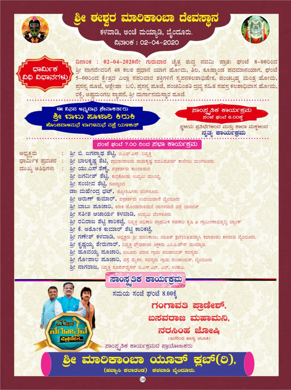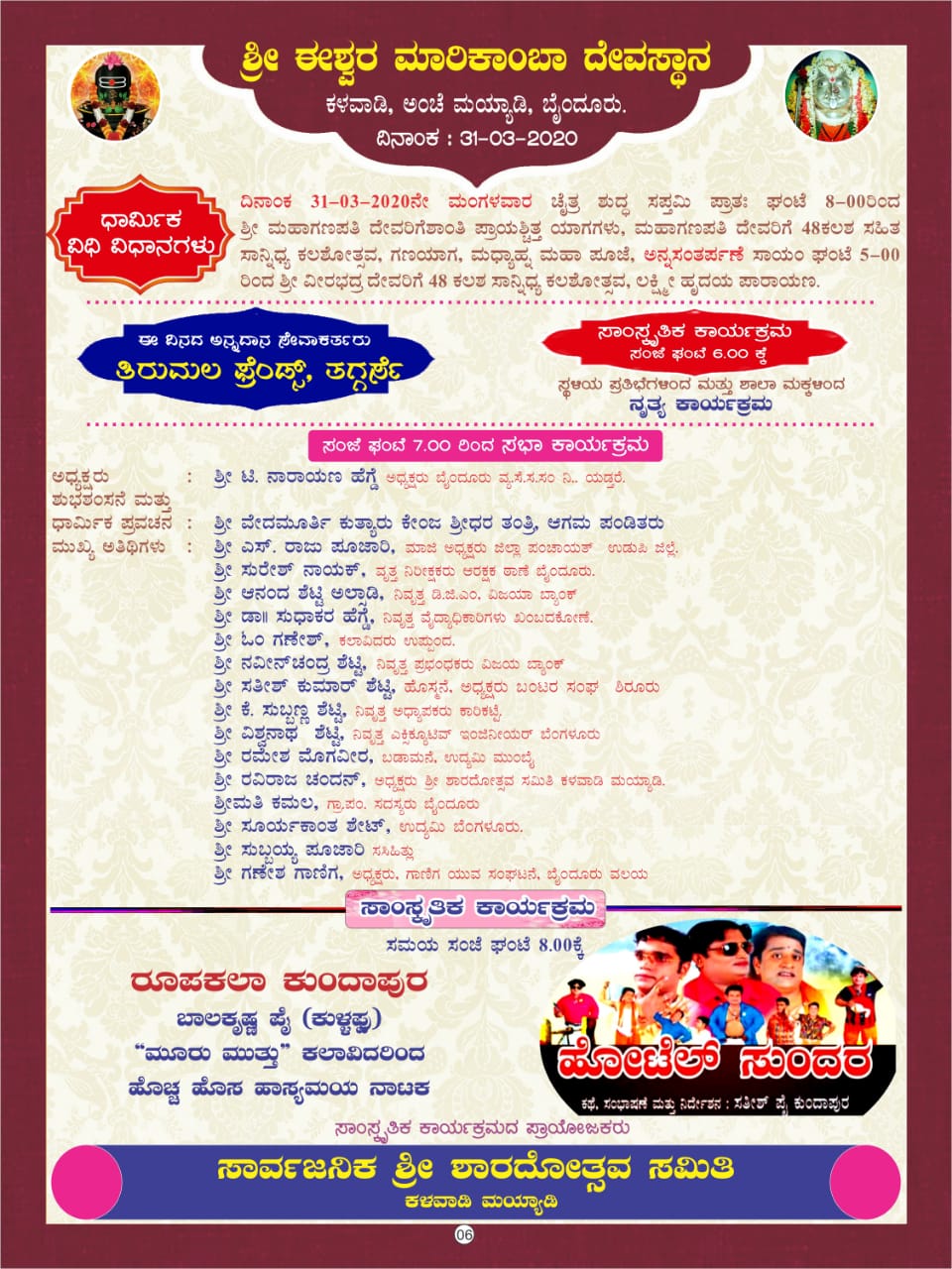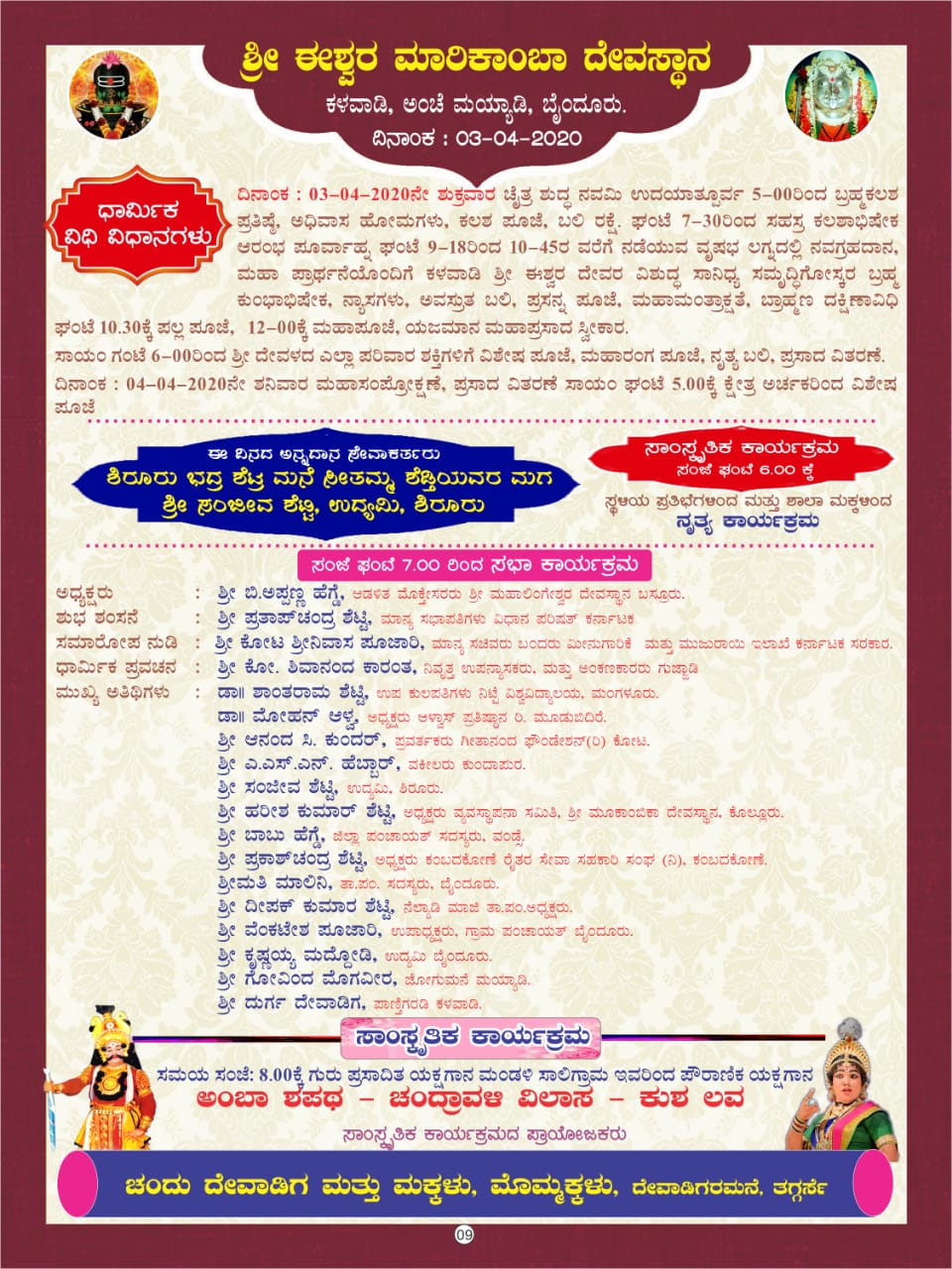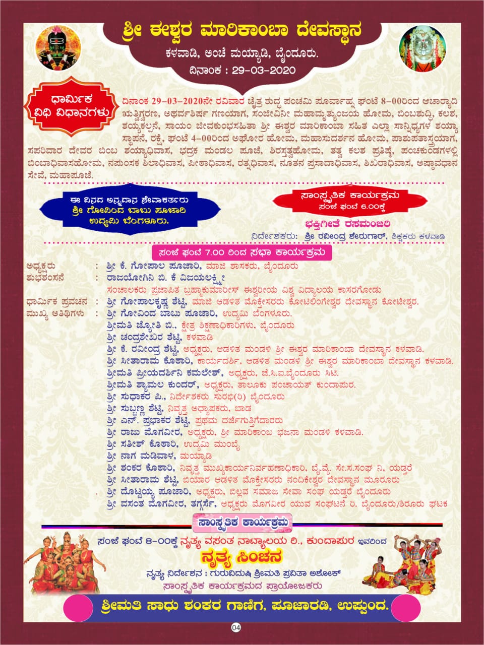 ಬೈಂದೂರು: ಕಳವಾಡಿ ಶ್ರೀ ಈಶ್ವರ ಮಾರಿಕಾಂಬ ದೇವಸ್ಥಾನದಲ್ಲಿ ಮಾ.೨೭ ರಿಂದ ಎ.೪ರ ವರೆಗೆ ನಡೆಯುವ ನವೀಕೃತ ಗರ್ಭಗುಡಿ ಮತ್ತು ನೂತನ ಶಿಲಾಮಯ ತೀರ್ಥ ಮಂಟಪ ಸಮರ್ಪಣೆ ಹಾಗೂ ಅಷಬಂಧ ಬ್ರಹ್ಮಕಲಶೋತ್ಸವದ ಆಮಂತ್ರಣ ಪತ್ರಿಕೆಯನ್ನು ನಿವೃತ್ತ ಅರಣ್ಯ ಸಂರಕ್ಷಣಾಧಿಕಾರಿ ಬಿ. ಜಗನ್ನಾಥ ಶೆಟ್ಟಿ ಬಿಡುಗಡೆಗೊಳಿಸಿದರು.