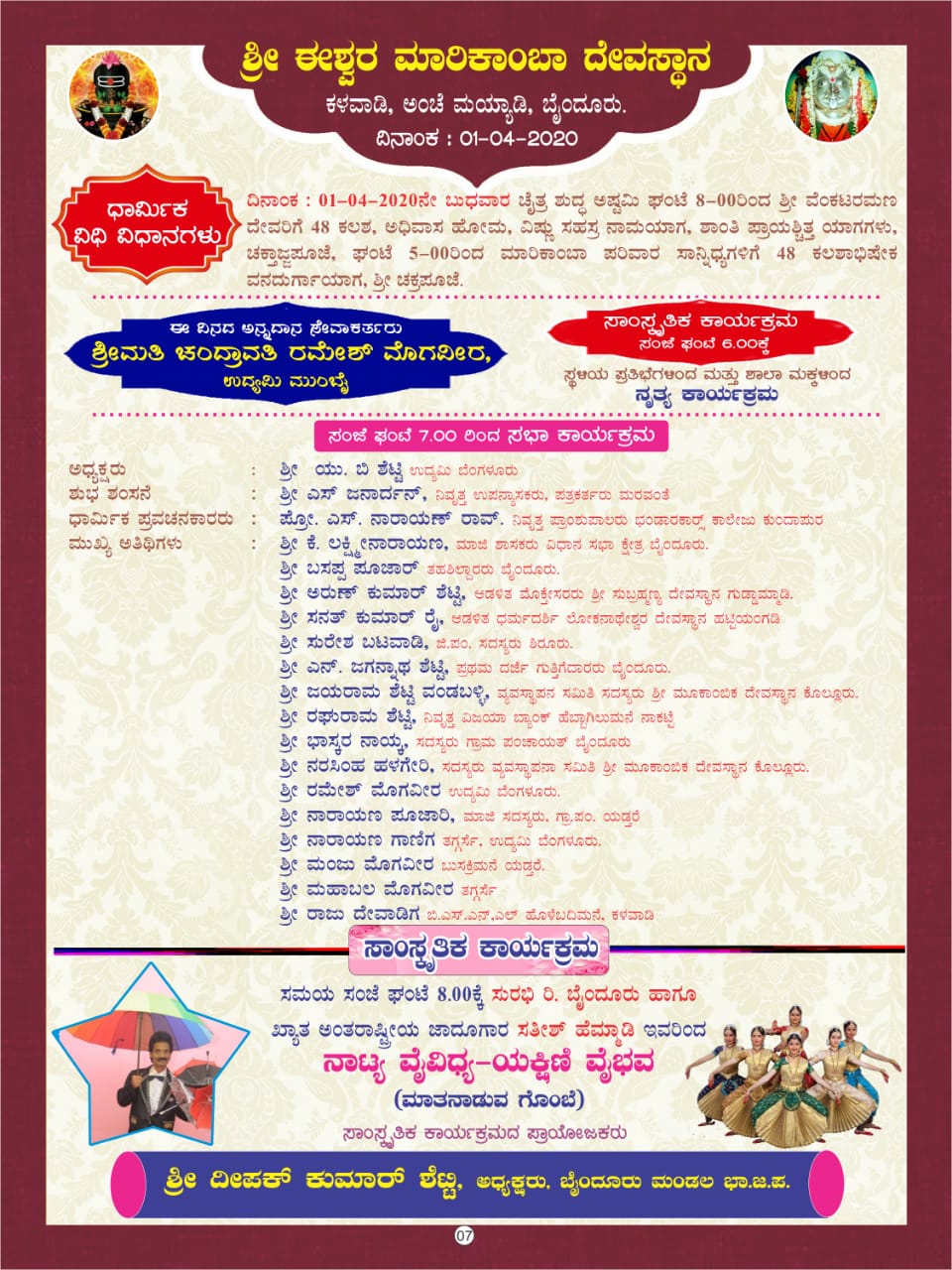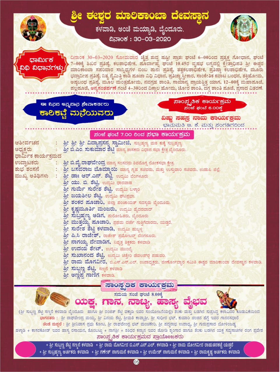 ಧಾರ್ಮಿಕ ಮುಖಂಡರಾದ ಬಿ. ಅಪ್ಪಣ್ಣ ಹೆಗ್ಡೆ, ಶ್ರೀ ಈಶ್ವರ ಮಾರಿಕಾಂಬ ದೇವಸ್ಥಾನದ ಆಡಳಿತ ಮಂಡಳಿ ಅನುವಂಶಿಯ ಮೊಕ್ತೇಸರರು ಕೆ ಚಂದ್ರಶೇಖರ ಶೆಟ್ಟಿ ಹಾಗು ಕೆ ವಸಂತ ಕುಮಾರ್ ಶೆಟ್ಟಿ ಕಾರಿಕಟ್ಟೆ, ಉತ್ಸವ ಸಮಿತಿ ಅಧ್ಯಕ್ಷರಾದ ಎಚ್ ವಸಂತ ಹೆಗ್ಡೆ ಕಳವಾಡಿ, ಜೀರ್ಣೋದ್ದಾರ ಸಮಿತಿ ಅಧ್ಯಕ್ಷರಾದ ದಿವಾಕರ್ ಹೆಗ್ಡೆ ಕಳವಾಡಿ, ಆಡಳಿತ ಮಂಡಳಿ ಅಧ್ಯಕ್ಷ ಕೆ. ರವೀಂದ್ರ ಶೆಟ್ಟಿ ಕಾರಿಕಟ್ಟೆ, ತಗ್ಗರ್ಸೆ ಟಿ. ನಾರಾಯಣ ಹೆಗ್ಡೆ, ವೆಂಕ್ಟ ಪೂಜಾರಿ ಸಸಿಹಿತ್ಲು, ವತ್ತಿನಕಟ್ಟೆ ದೇವಳದ ಗೌರವಾಧ್ಯಕ್ಷರಾದ ರಾಜು ಪೂಜಾರಿ ಯಡ್ತರೆ, ಅಧ್ಯಕ್ಷರಾದ ನಾಗರಾಜ ಶೆಟ್ಟಿ ನಾಕಟ್ಟೆ, ಜಗನ್ನಾಥ ಶೆಟ್ಟಿ, ವೆಂಕಟಾಚಲ ಮಯ್ಯ ಮತ್ತು ಗಣಪಯ್ಯ ಅರ್ಚಕರು, ಪ್ರಧಾನ ಕಾರ್ಯದರ್ಶಿ ಸಂಜೀವ ಆಚಾರ್ಯ, ಯುವ ಸಮಿತಿ ಅಧ್ಯಕ್ಷರಾದ ಬೈರಿಮನೆ ನಾಗರಾಜ ಮೊದಲಾದವರು ಉಪಸ್ಥಿತರಿದ್ದರು.