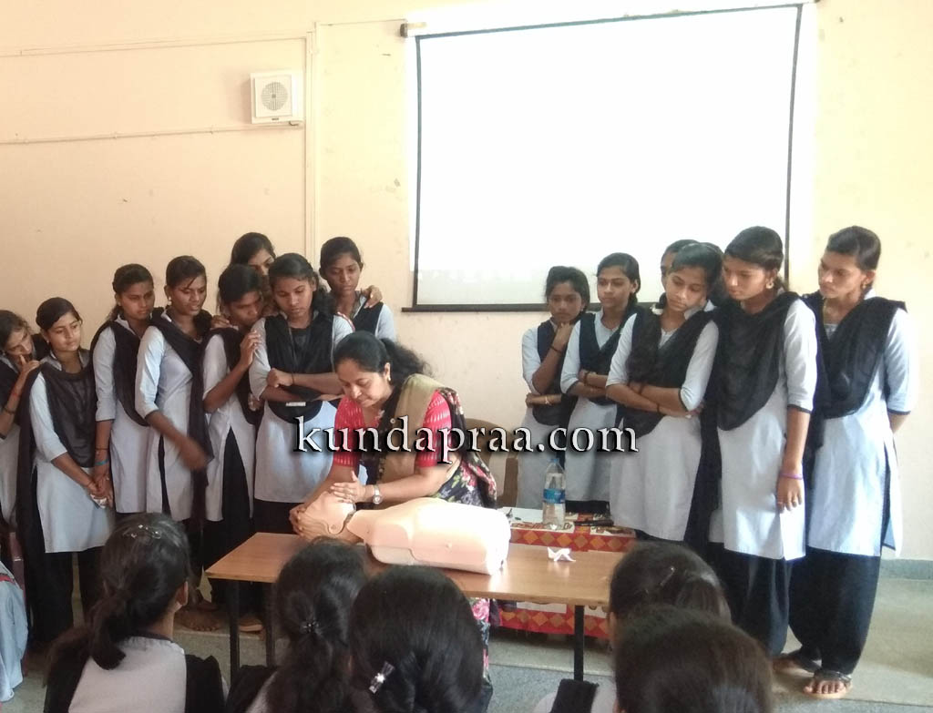 ಡಾ. ಸೋನಿ ಡಿಕೋಸ್ಟಾ, ಅಮೃತೇಶ್ವರಿ ಆಯುರ್ವೇದಿಕ್ ಕಾಲೇಜು, ಕುಂದಾಪುರ ಇವರು ಬೆಂಕಿ ಅನಾಹುತ, ರಕ್ತಸ್ರಾವ, ನೀರಿನ ಅವಘಡ ತುರ್ತಾಗಿ ಮಾಡಬೇಕಾದ ಪ್ರಥಮ ಚಿಕಿತ್ಸೆಯ ವಿಧಾನಗಳನ್ನು ಮತ್ತು ಹಾಗೂ ಬಹುಮುಖ್ಯವಾಗಿ ಹೃದಯಾಘಾತದ ಸಂದರ್ಭದಲ್ಲಿ ಮಾಡಬೇಕಾದ ಸಿ.ಪಿ.ಆರ್. ವಿಧಾನವನ್ನು ಪ್ರಾತ್ಯಕ್ಷಿಕೆಯ ಮೂಲಕ ತೋರಿಸಿಕೊಟ್ಟರು.