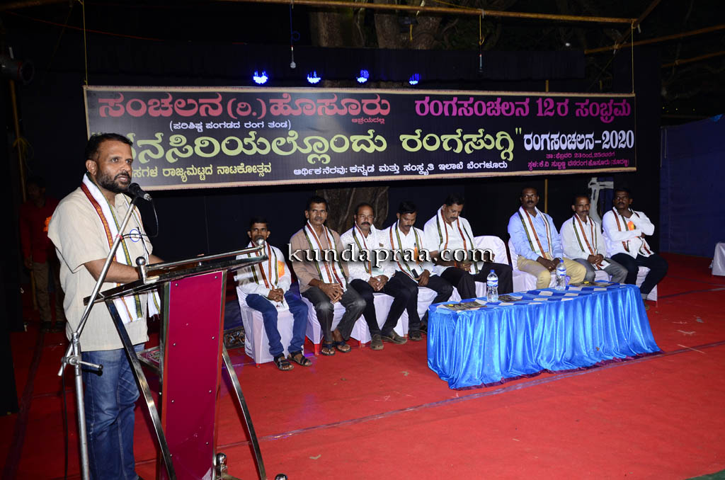 ಅವರು ಪರಿಶಿಷ್ಟ ಪಂಗಡದ ರಂಗತಂಡ ಸಂಚಲನ ರಿ. ಹೊಸೂರು ಆಶ್ರಯದಲ್ಲಿ, ಕನ್ನಡ ಮತ್ತು ಸಂಸ್ಕೃತಿ ಇಲಾಖೆ ಸಹಯೋಗದೊಂದಿಗೆ ಮಂಗಳವಾರ ಹೊಸೂರಿನ ಕೆ.ವಿ ಸುಬ್ಬಣ್ಣ ವನರಂಗದಲ್ಲಿ ಆಯೋಜಿಸಲಾದ ಹನ್ನೆರಡನೇ ವರ್ಷದ ವಾರ್ಷಿಕ ಸಂಭ್ರಮ ವನಸಿರಿಯಲ್ಲೊಂದು ರಂಗಸುಗ್ಗಿಯ ಸಮಾರೋಪ ಸಮಾರಂಭದಲ್ಲಿ ಮಾತನಾಡಿ ಹಿಂದಿನಿಂದಲೂ ಕಲೆಯನ್ನು ಬೆಳೆಸಿಕೊಂಡು ಬಂದ್ದದ್ದು ಶ್ರಮಿಕ ವರ್ಗ. ಗ್ರಾಮೀಣ ಪ್ರದೇಶಗಳಲ್ಲಿ ಗಟ್ಟಿಯಾಗಿ ಉಳಿದುಕೊಂಡಿದೆ. ಕಲೆ ಸರ್ವವ್ಯಾಪಿಯಾಗಿದ್ದು ಸಮಾಜಕ್ಕೆ ಎಲ್ಲವನ್ನೂ ಸಶಕ್ತವಾಗಿ ತಲುಪಿಸುವ ಶಕ್ತಿ ಹೊಂದಿದೆ ಎಂದರು.