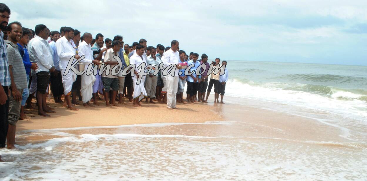 ಗಂಗೊಳ್ಳಿ ವಲಯ ನಾಡದೋಣಿ ಮೀನುಗಾರರ ಸಂಘದ ಅಧ್ಯಕ್ಷ ಕೆ.ಮಂಜು ಬಿಲ್ಲವ ಮತ್ತು ಬೈಂದೂರು ವಲಯ ನಾಡದೋಣಿ ಮೀನುಗಾರರ ಸಂಘದ ಅಧ್ಯಕ್ಷ ಬಿ.ಕುಮಾರ್ ನೇತೃತ್ವದಲ್ಲಿ ಮರವಂತೆಯ ಶ್ರೀ ಗಂಗಾಧರೇಶ್ವರ ಸ್ವಾಮಿ ದೇವಸ್ಥಾನ, ಅರಮ ದೇವಸ್ಥಾನ (ಬೊಬ್ಬರ್ಯ) ಮತ್ತು ಶ್ರೀ ವರಾಹ, ಶ್ರೀ ವಿಷ್ಣು ಮತ್ತು ಶ್ರೀ ನರಸಿಂಹ ದೇವಸ್ಥಾನ ಹಾಗೂ ಕ್ಷೇತ್ರಪಾಲ ದೇವಸ್ಥಾನದಲ್ಲಿ ಮೀನುಗಾರರು ವಿಶೇಷ ಪೂಜೆ ಸಲ್ಲಿಸಿದರು.