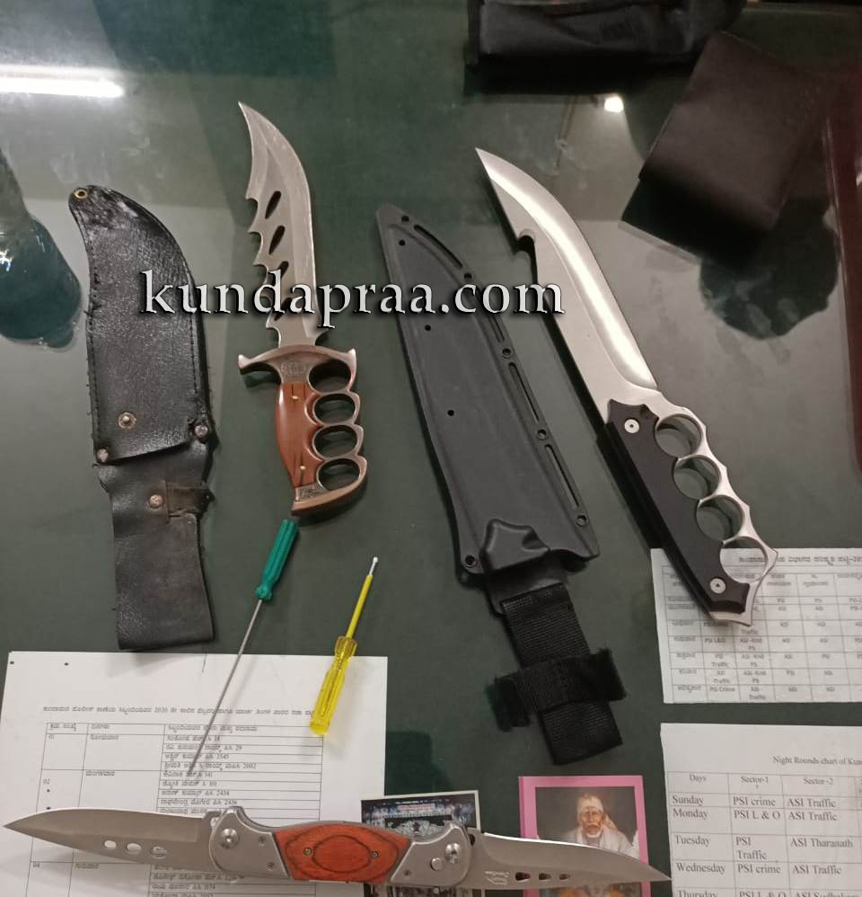 ಠಾಣೆಯಲ್ಲಿ ದೂರು ದಾಖಲಾಗುತ್ತಿದ್ದಂತೆ ಕುಂದಾಪುರದ ಪಿಎಸೈ ಹರೀಶ್ ಆರ್. ಮತ್ತವರ ತಂಡ ಆರೋಪಿಗಳಿಗಾಗಿ ಕಾರ್ಯಾಚರಣೆಗಿಳಿಯಿತು. ಅಷ್ಟರಲ್ಲಾಗಲೇ ಆರೋಪಿಗಳು ವಾಸವಿದ್ದ ಲಾಡ್ಜ್ನಿಂದ ಕಾಲ್ಕಿತ್ತಿದ್ದರು. ಪೊಲೀಸರು ತಕ್ಷಣ ಅವರ ಕಾರನ್ನು ಬೆನ್ನತ್ತಿದ್ದು, ಕೊಟೇಶ್ವರದ ಸಮೀಪ ಆರೋಪಿಗಳನ್ನು ಬಂಧಿಸಿದರು. ಬಂಧಿತ ಆರೋಪಿಗಳಿಂದ ಕಾರು, ಚೂರಿಗಳು ಹಾಗೂ ಸ್ಕ್ರೂಡ್ರೈವರ್ ವಶಕ್ಕೆ ಪಡೆದುಕೊಳ್ಳಲಾಗಿದೆ. /ಕುಂದಾಪ್ರ ಡಾಟ್ ಕಾಂ ಸುದ್ದಿ./