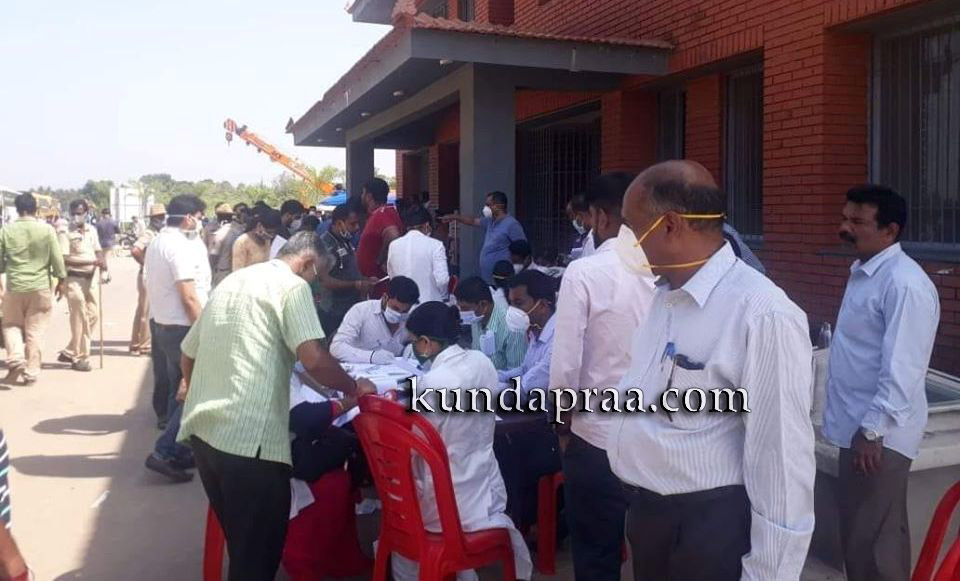 ಇಂದು ಬೆಳಿಗ್ಗೆ ಮುಂಬೈನಿಂದ ಹೊರಟ್ಟಿದ್ದ ಬಸ್ಸುಗಳು ಉಡುಪಿ ಕಡೆಗೆ ತೆರಳುತ್ತಿದ್ದರಿಂದ ಶಿರೂರು ಗಡಿಭಾಗದಲ್ಲಿ ಬಸ್ಸಿನಲ್ಲಿ ಆಗಮಿಸುತ್ತಿರವವರ ಆರೋಗ್ಯ ತಪಾಸಣೆಗೆ ಮಾಡಲಾಯಿತು. ಮುಂಬೈನಿಂದ ಆಗಮಿಸುವ ಎಲ್ಲಾ ಬಸ್ಗಳನ್ನು ತಡೆಗೆ ಅದರಲ್ಲಿರುವವರ ಆರೋಗ್ಯ ತಪಾಸಣೆ ಮಾಡಲಾಯಿತು./ಕುಂದಾಪ್ರ ಡಾಟ್ ಕಾಂ ವರದಿ./